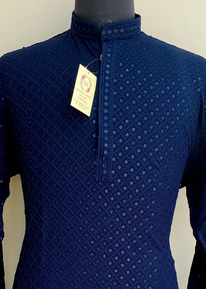 Lucknowi Chikankari Men’s Kurta Blue Cotton