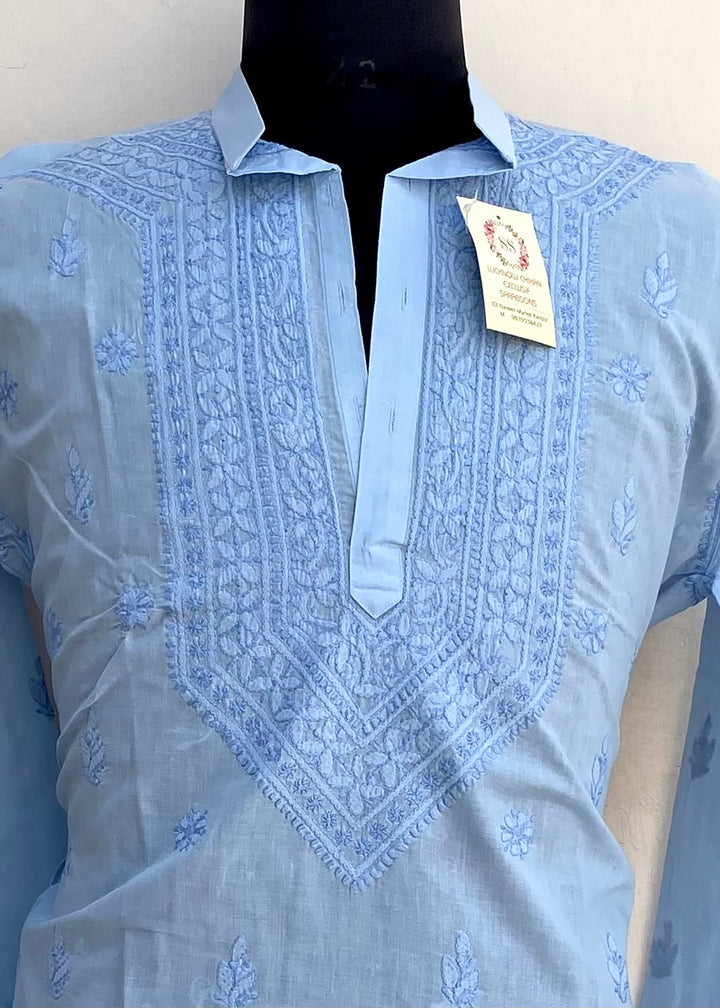 Lucknowi Chikankari Men’s Kurta Blue Cotton