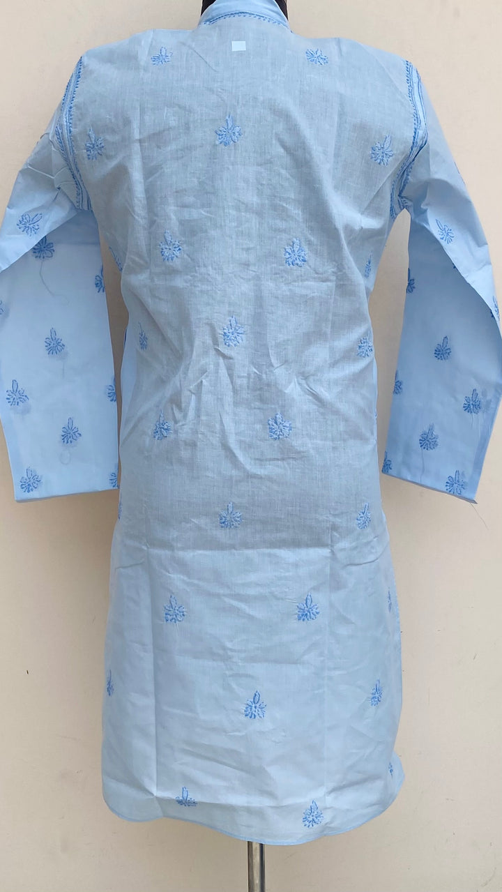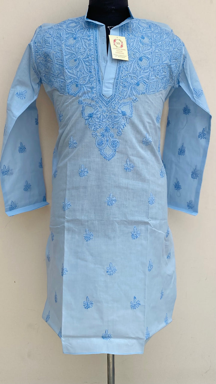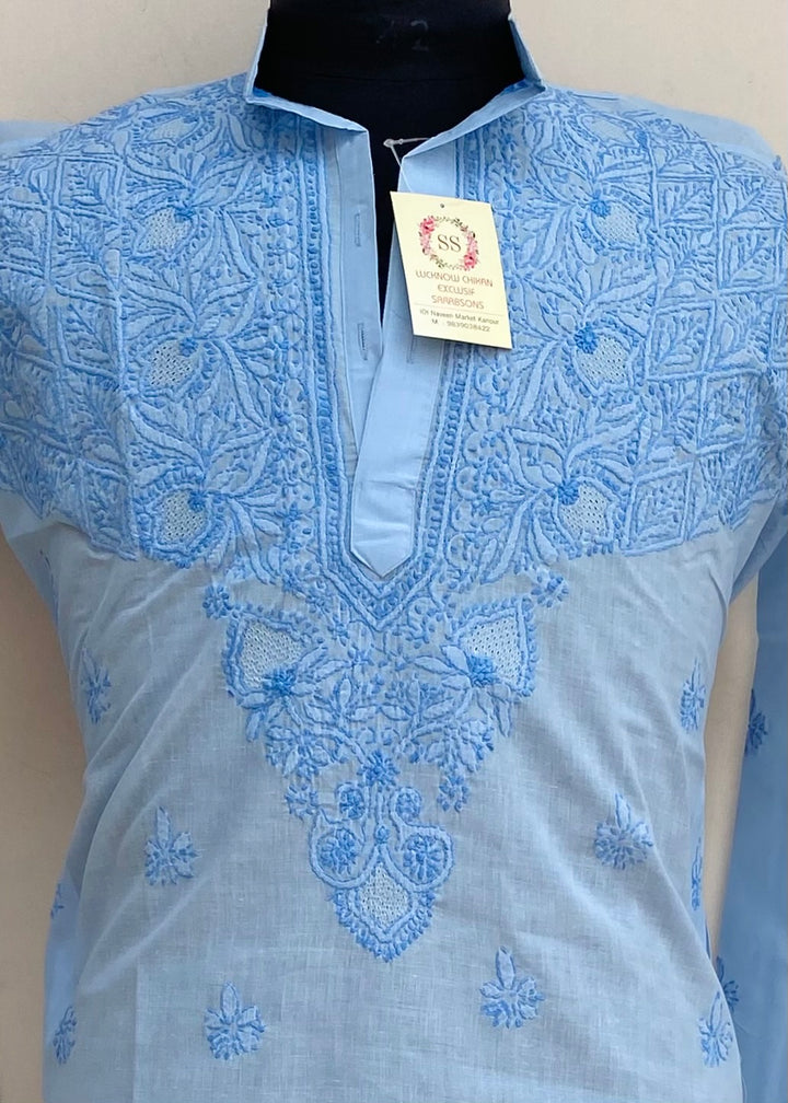 Lucknowi Chikankari Men’s kurta Blue Cotton With Jaali Work