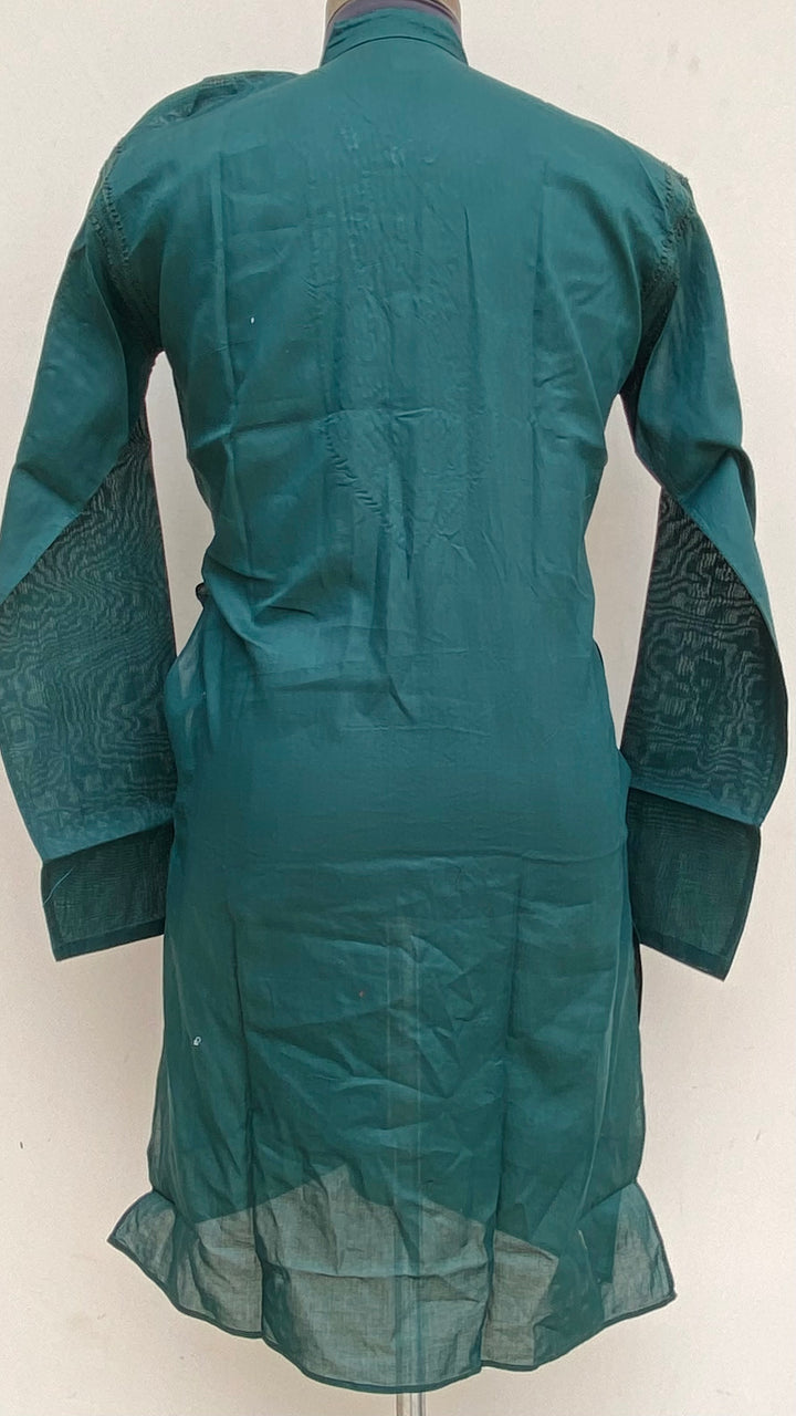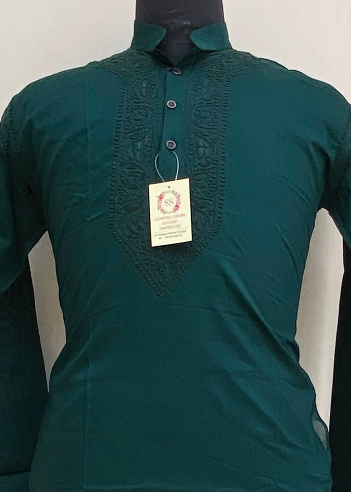 Lucknowi Chikankari Men’s Kurta Bottle Green Cotton