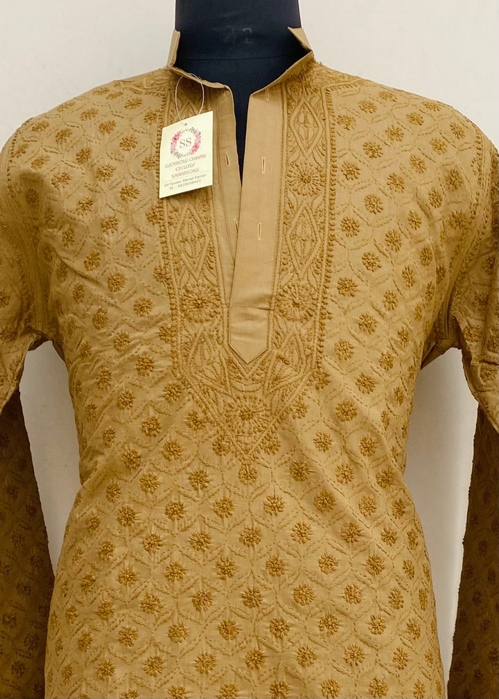 Lucknowi Chikankari Men’s Kurta Brown Cotton