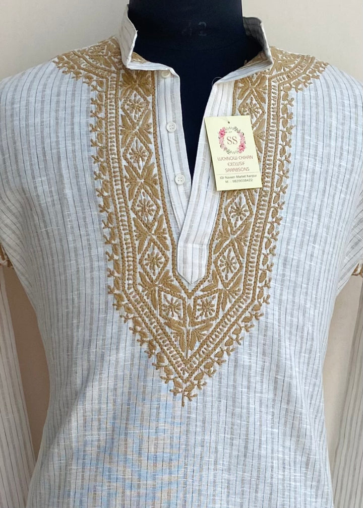 Lucknowi Chikankari Men’s Kurta Cream Cotton