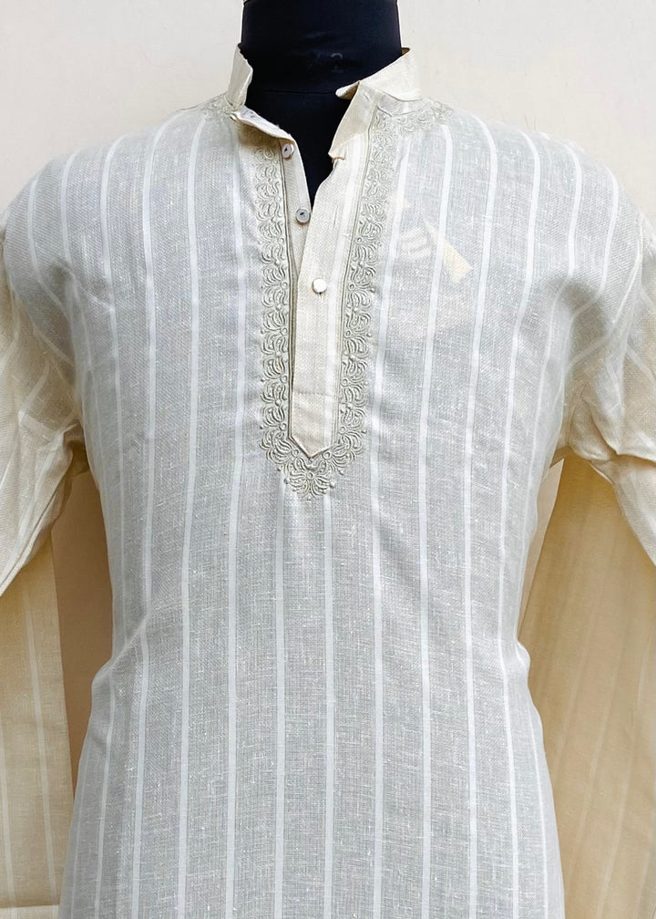 Lucknowi Chikankari Men’s Kurta Cream Cotton