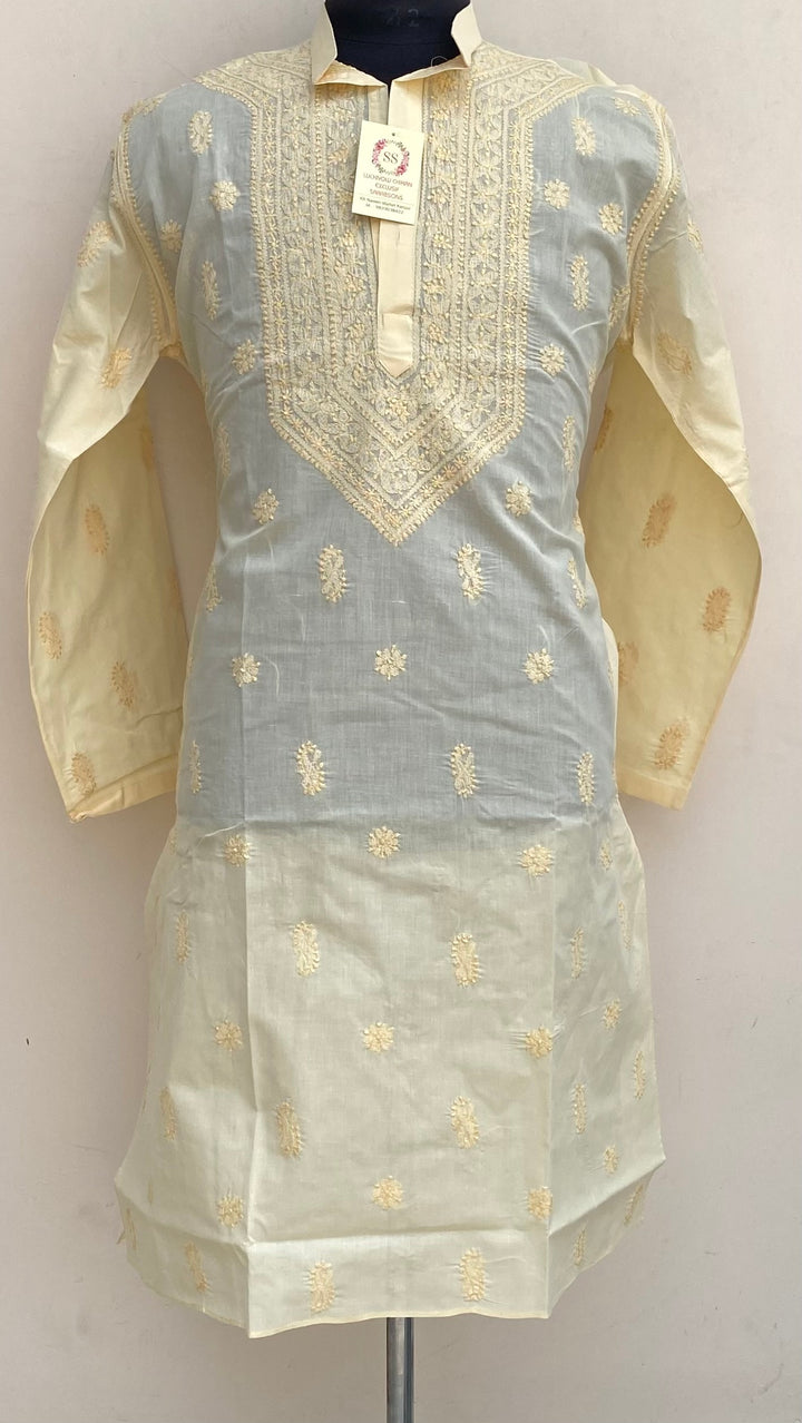 Lucknowi Chikankari Men’s Kurta Cream Cotton