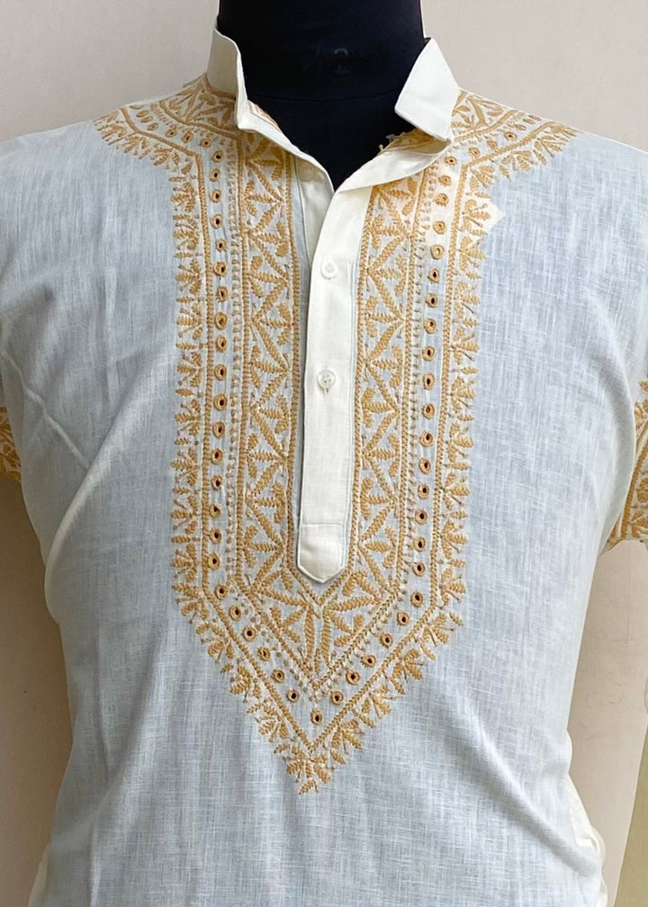 Lucknowi Chikankari Men’s Kurta Cream Cotton