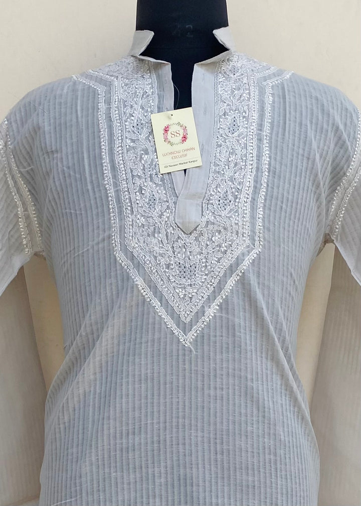 Lucknowi Chikankari Men’s Kurta Gray Cotton With Jaali Work