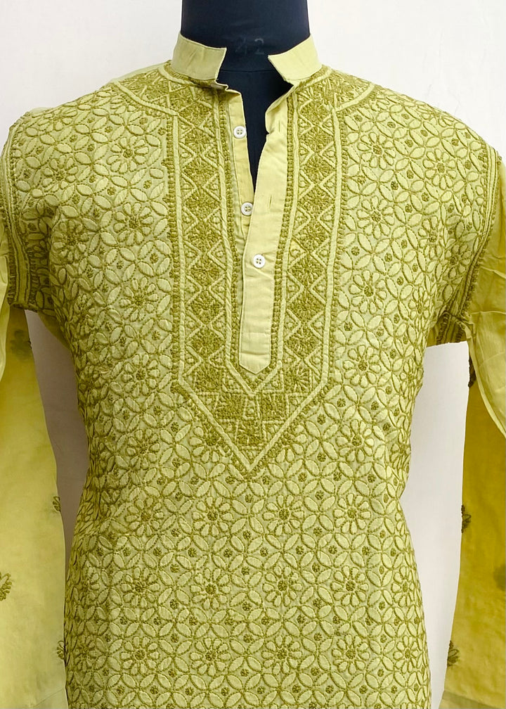 Lucknowi Chikankari Men’s Kurta Green Cotton