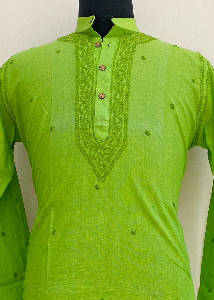 Lucknowi Chikankari Men’s Kurta Green Cotton