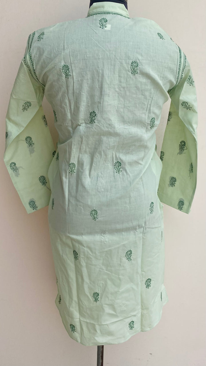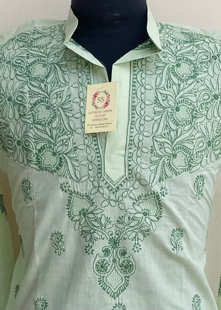 Lucknowi Chikankari Men’s Kurta Green Cotton With Jaali Work