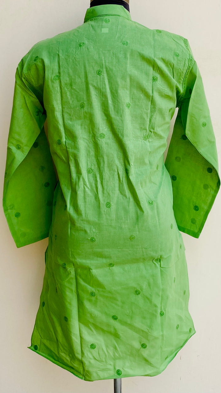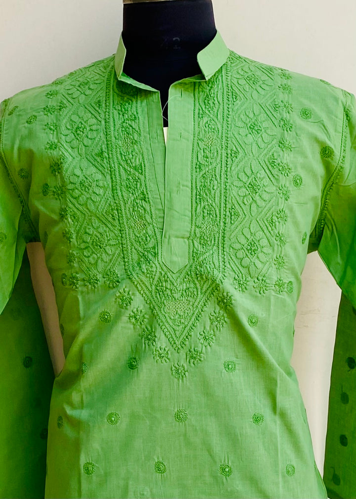 Lucknowi Chikankari Men’s Kurta Green Cotton With Jaali Work
