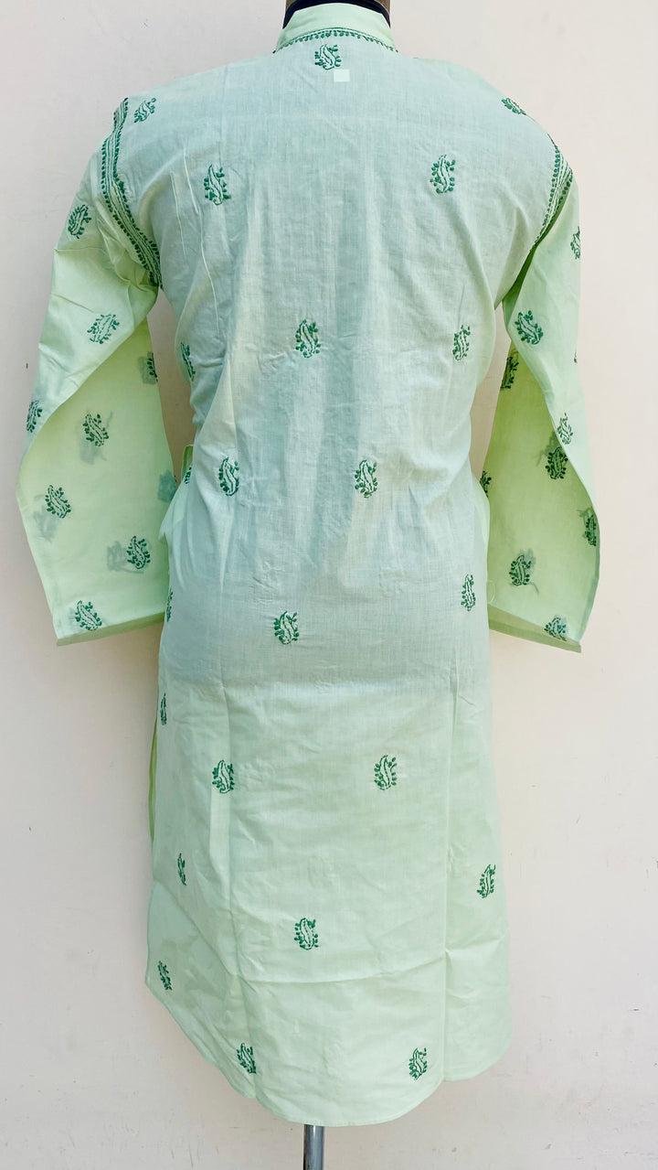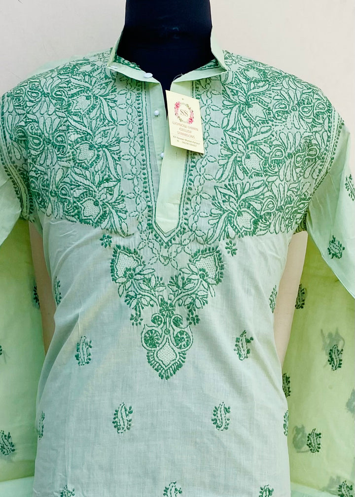 Lucknowi Chikankari Men’s Kurta Green Cotton With Jaali Work