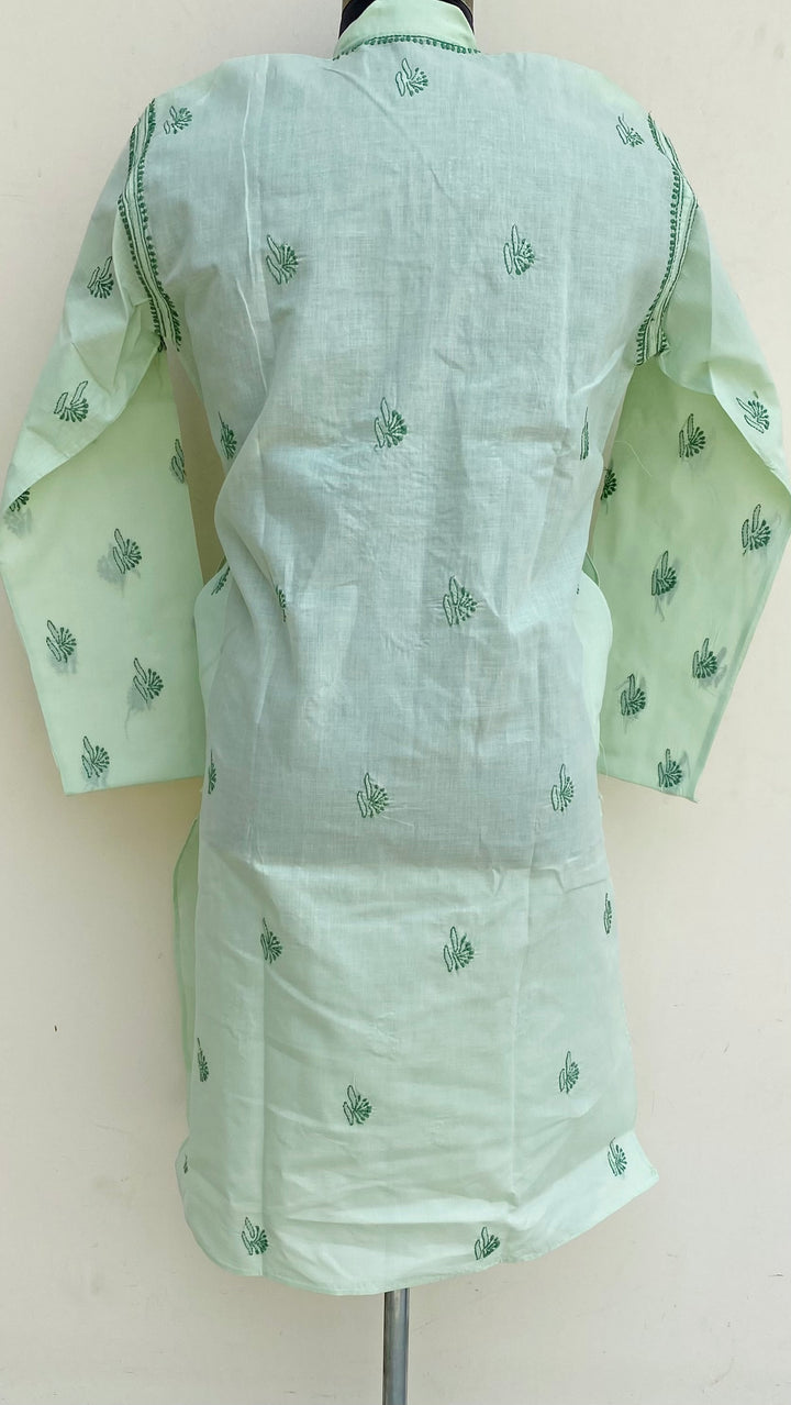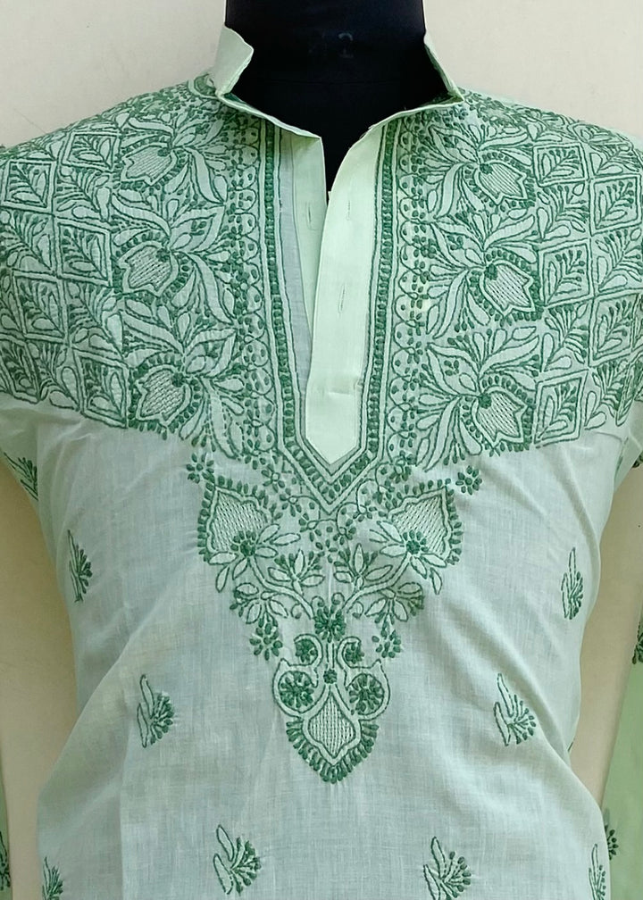 Lucknowi Chikankari Men’s Kurta Green Cotton With Jaali Work