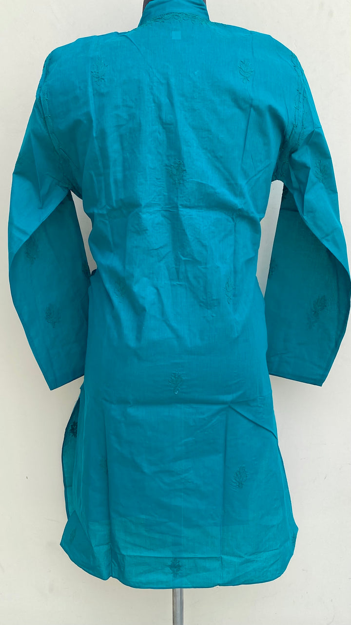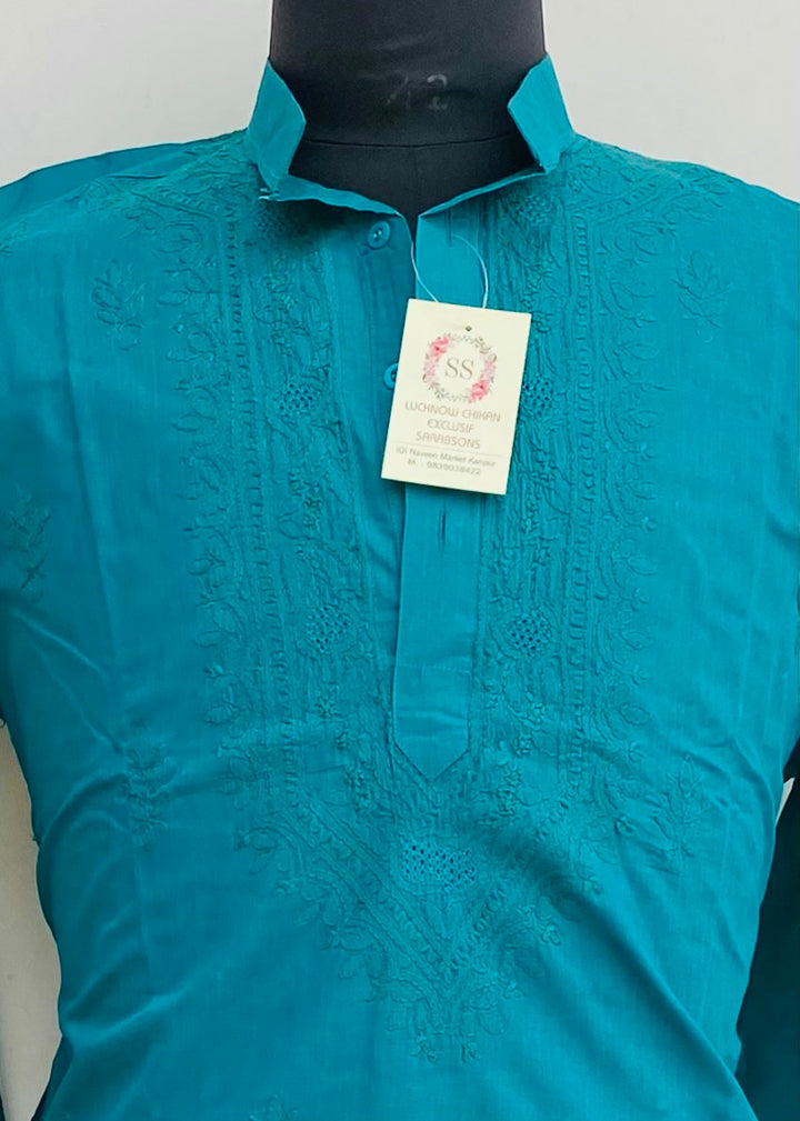 Lucknowi Chikankari Men’s Kurta Green Cotton With Jaali Work