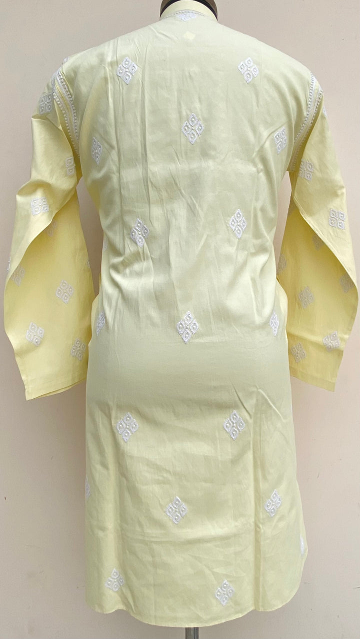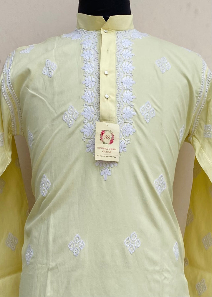 Lucknowi Chikankari Men’s Kurta Lemon Yellow Cotton