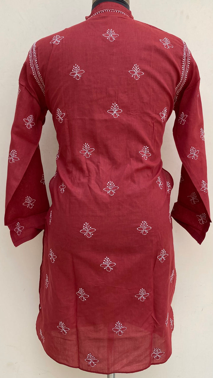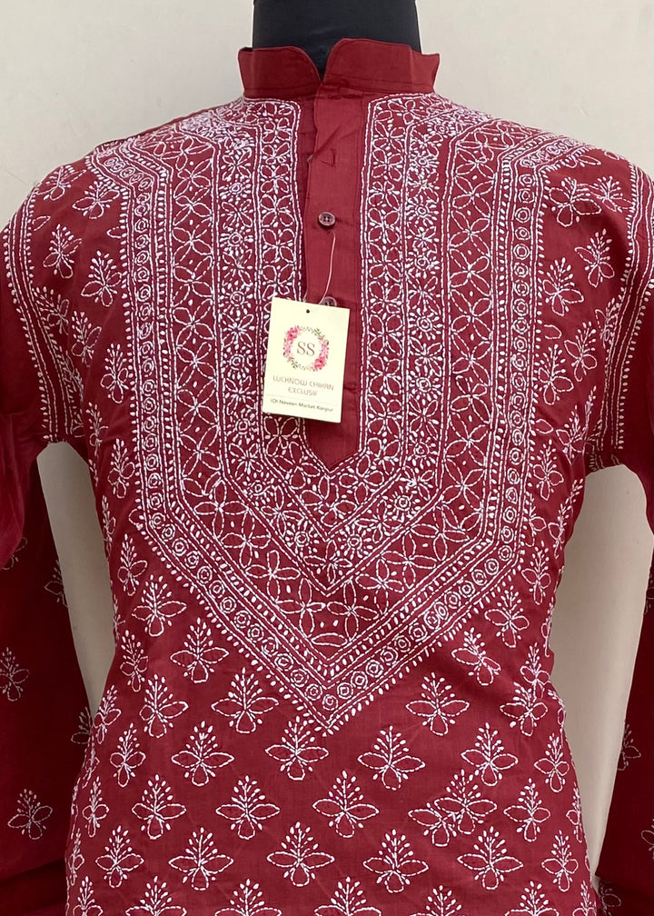 Lucknowi Chikankari Men’s Kurta Maroon Cotton