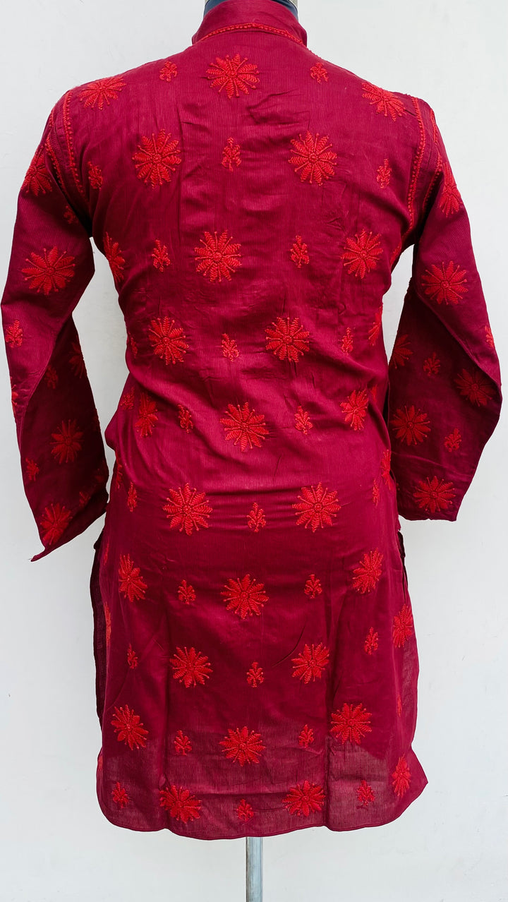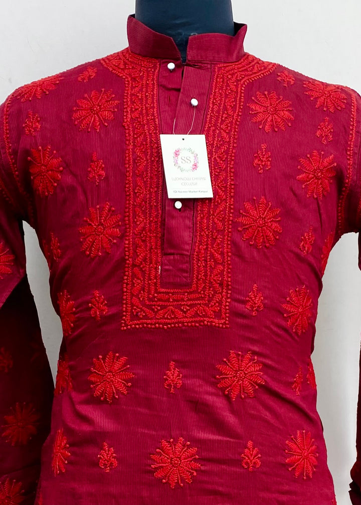 Lucknowi Chikankari Men’s Kurta Maroon Cotton