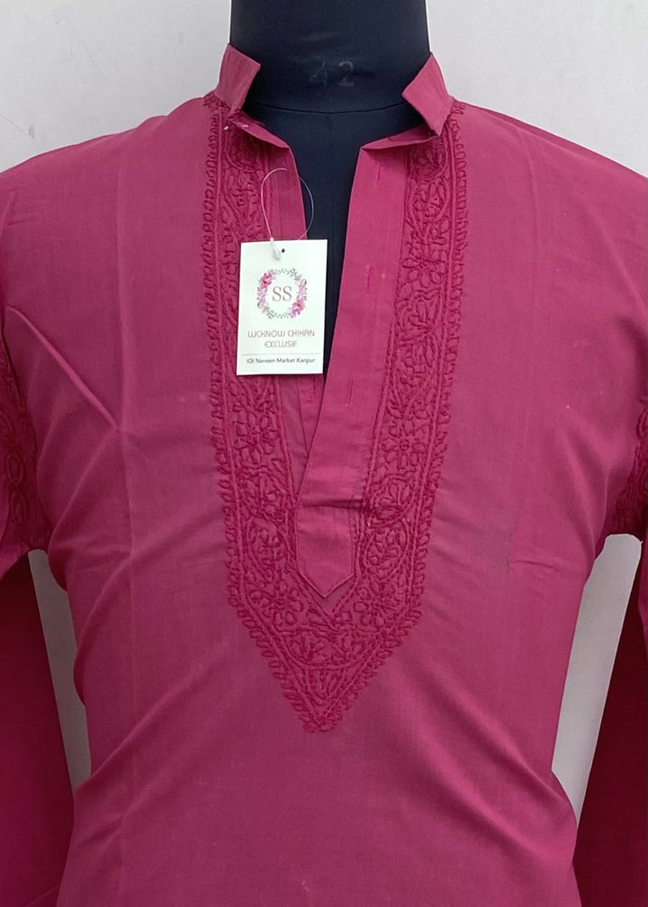 Lucknowi Chikankari Men’s Kurta Maroon Cotton