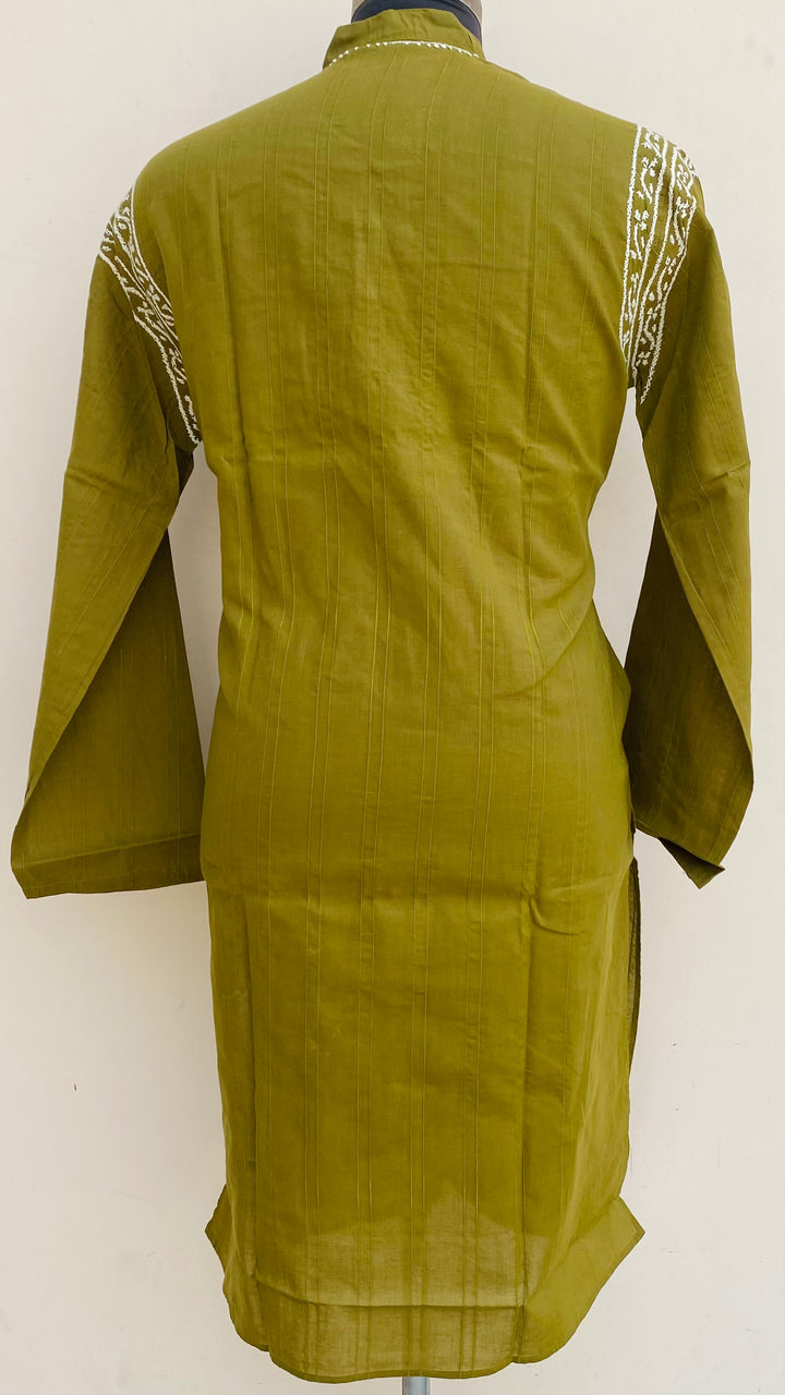 Lucknowi Chikankari Men’s Kurta Mehndi Green Cotton