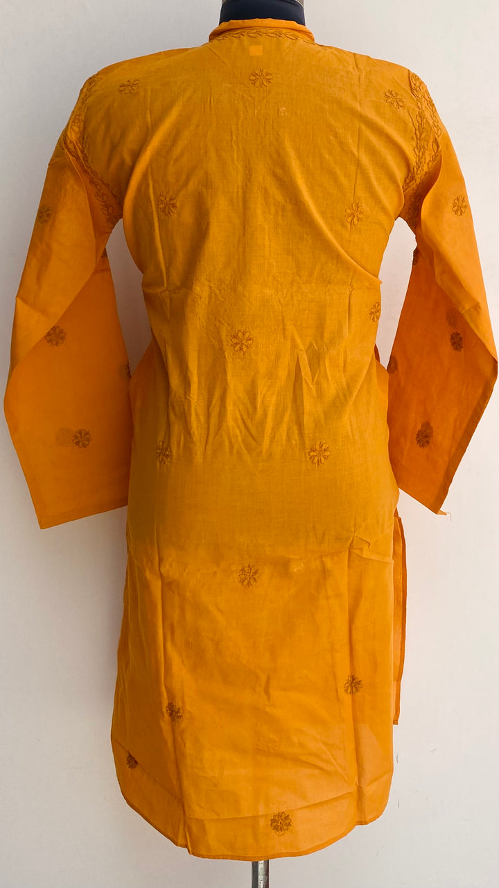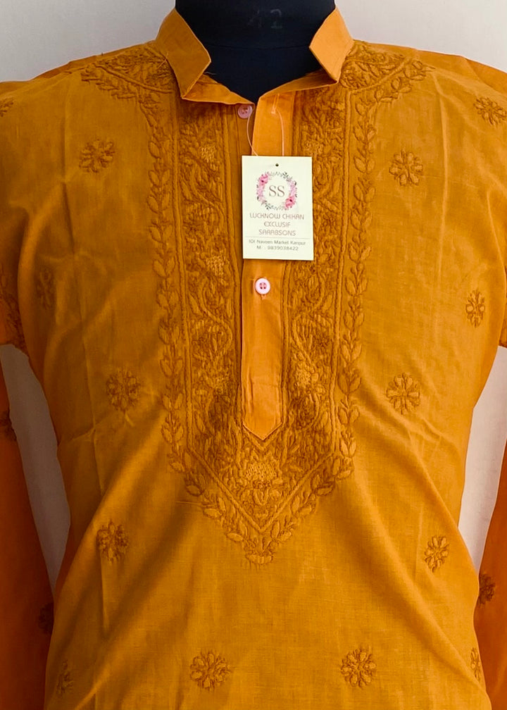 Lucknowi Chikankari Men’s Kurta Mustard Cotton With Jaali Work