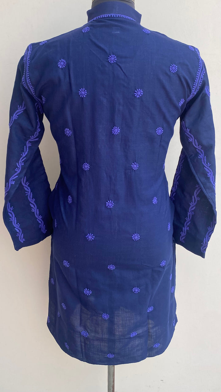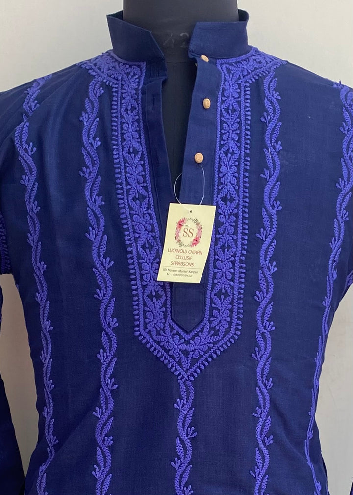 Lucknowi Chikankari Men’s Kurta Navy Blue Cotton