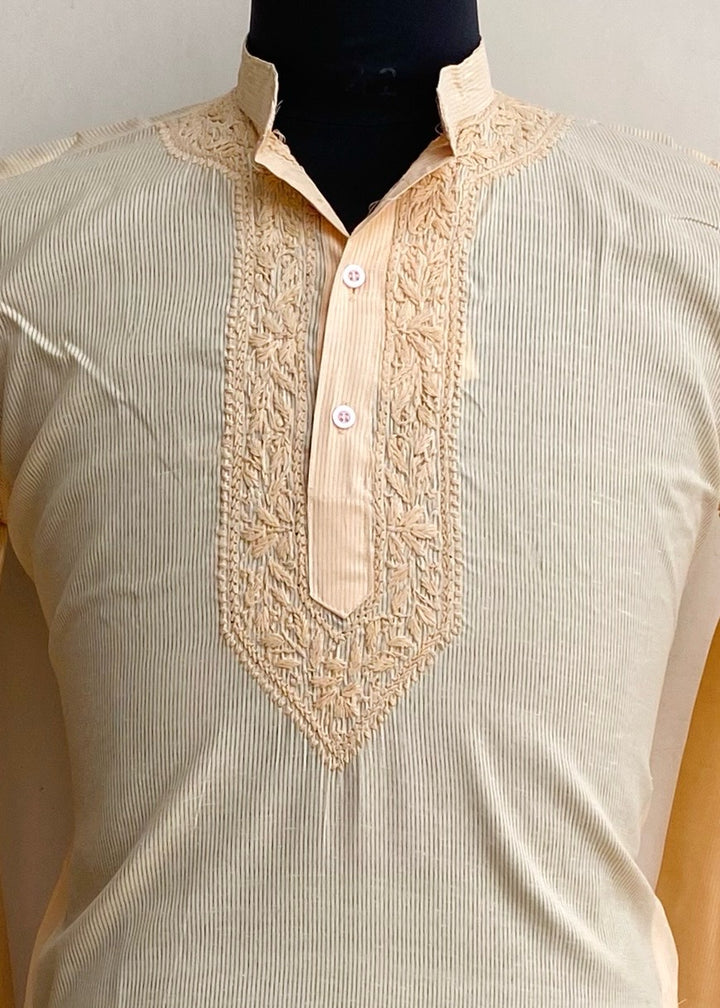 Lucknowi Chikankari Men’s Kurta Peach Cotton