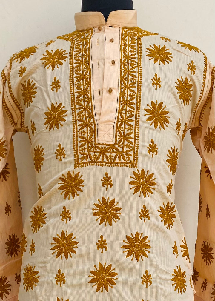 Lucknowi Chikankari Men’s Kurta Peach Cotton