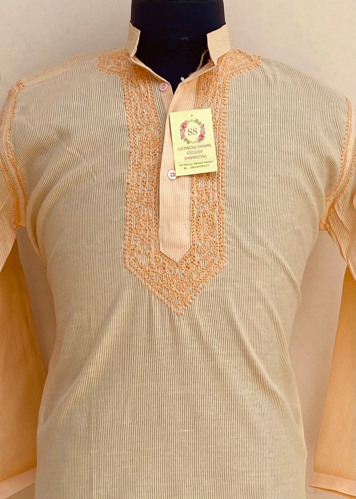 Lucknowi Chikankari Men’s Kurta Peach Cotton