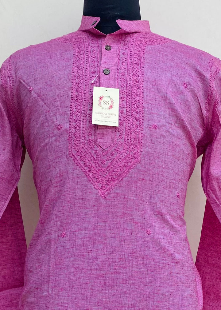 Lucknowi Chikankari Men’s Kurta Pink Cotton