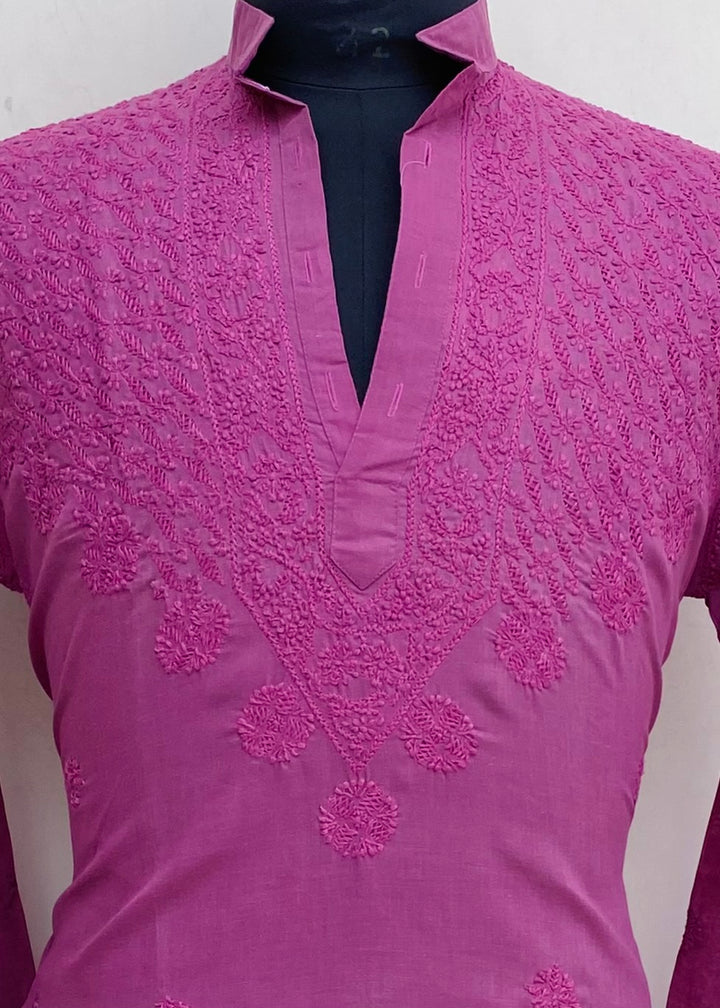 Lucknowi Chikankari Men’s Kurta Pink Cotton