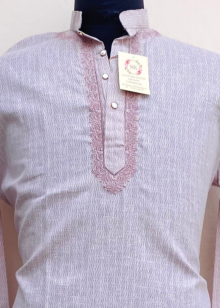 Lucknowi Chikankari Men’s Kurta Pink Cotton
