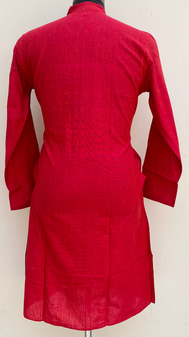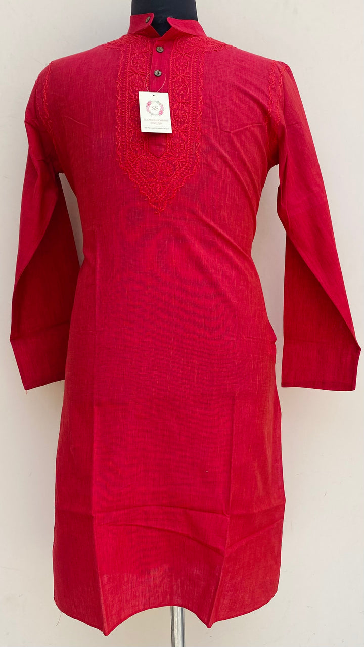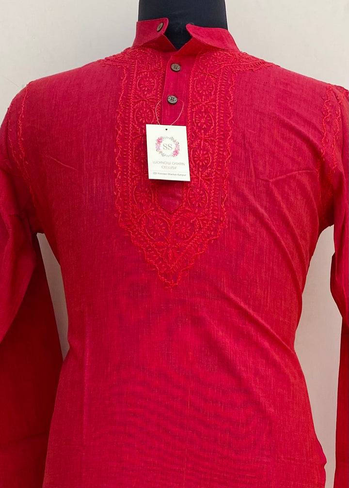 Lucknowi Chikankari Men’s Kurta Red Cotton