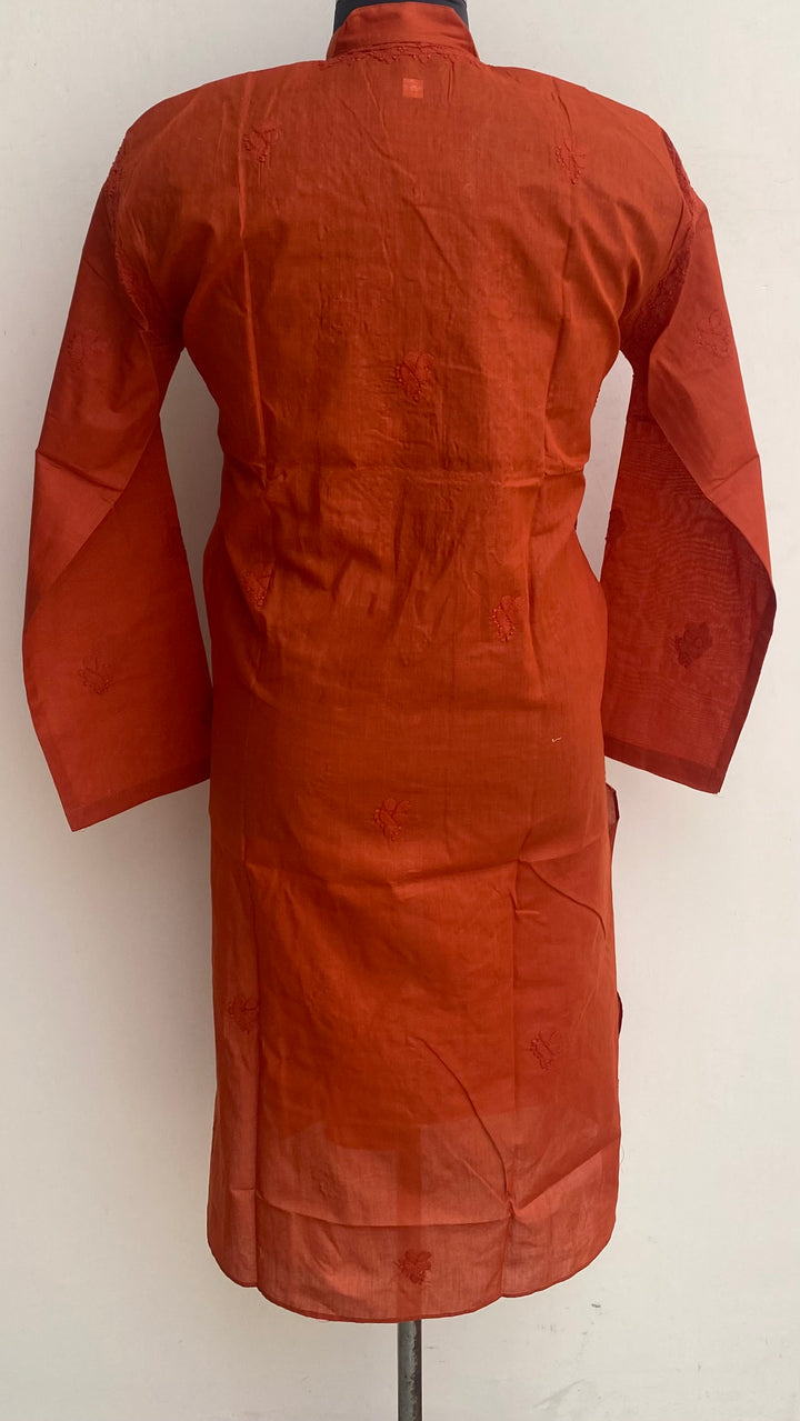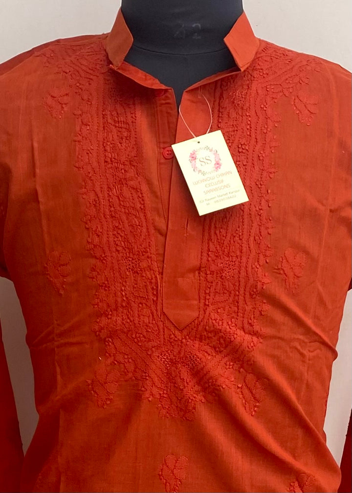 Lucknowi Chikankari Men’s Kurta Rust Cotton With Jaali Work