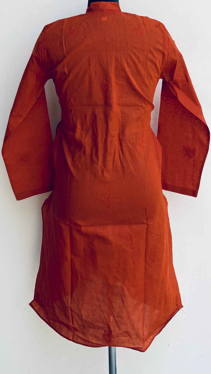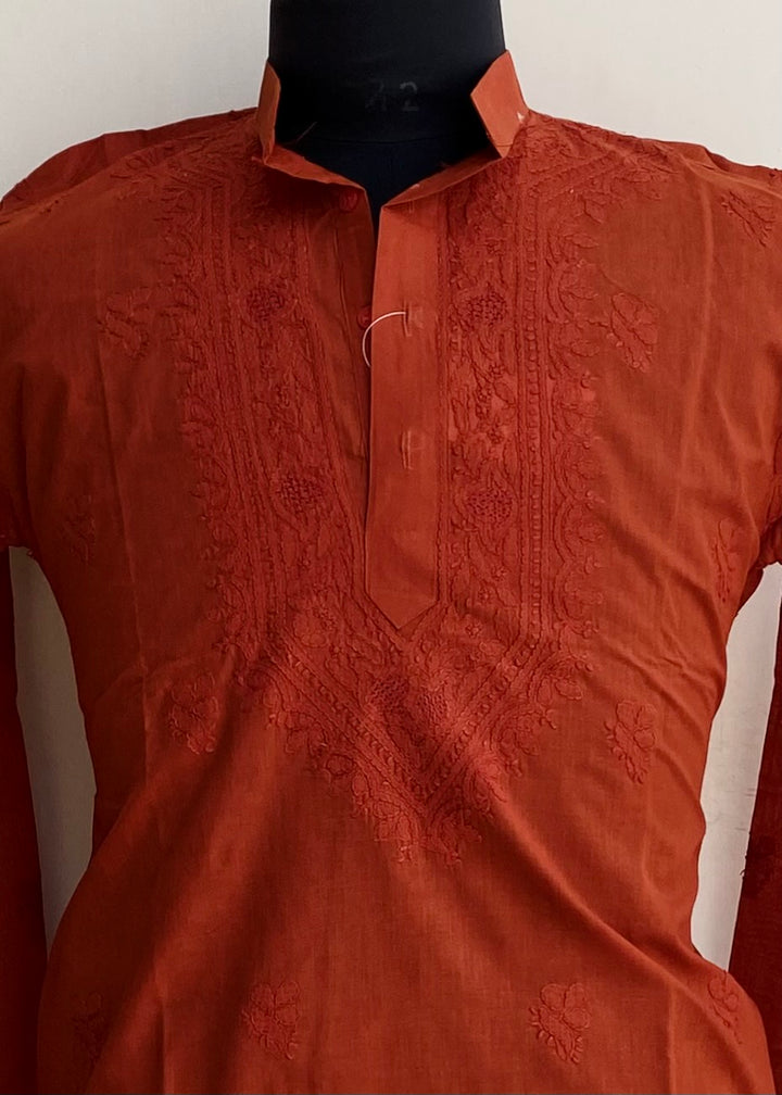Lucknowi Chikankari Men’s Kurta Rust Cotton With Jaali Work