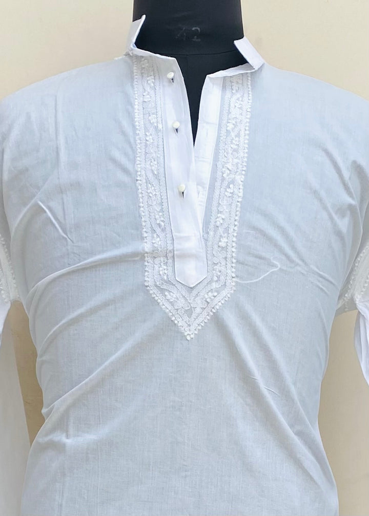 Lucknowi Chikankari Men’s Kurta White Cotton