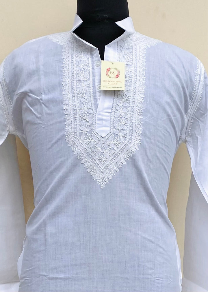 Lucknowi Chikankari Men’s Kurta White Cotton