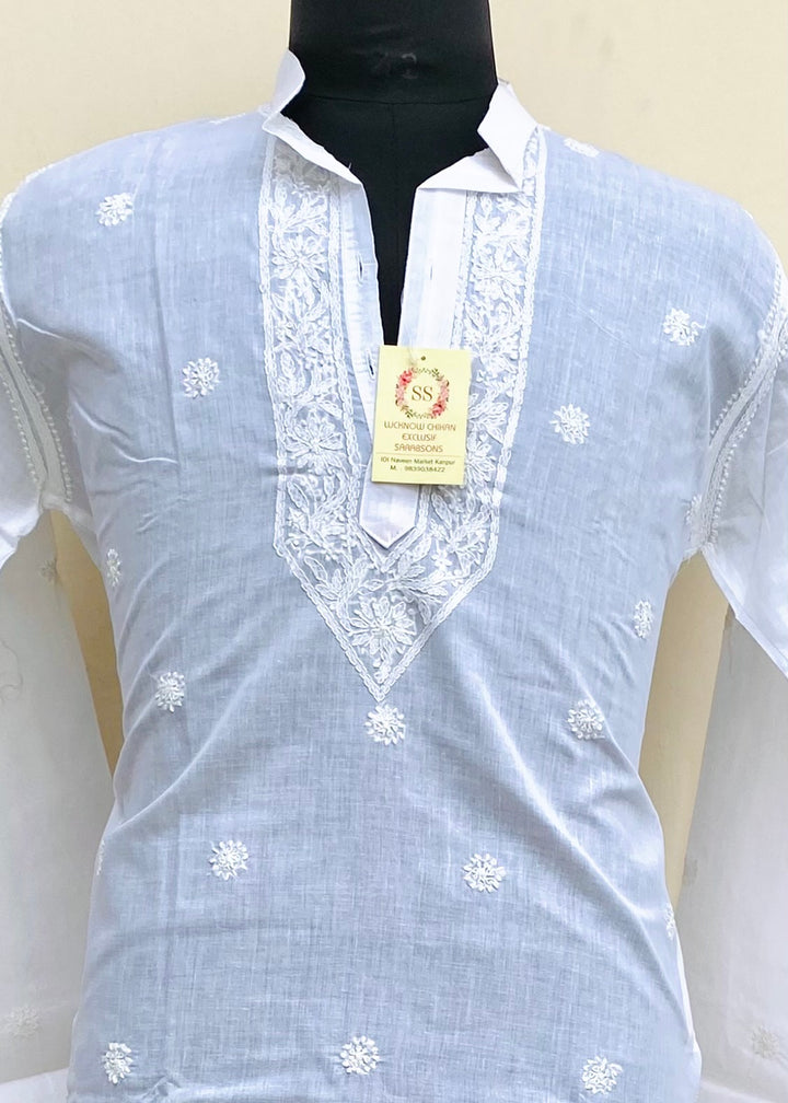 Lucknowi Chikankari Men’s Kurta White Cotton