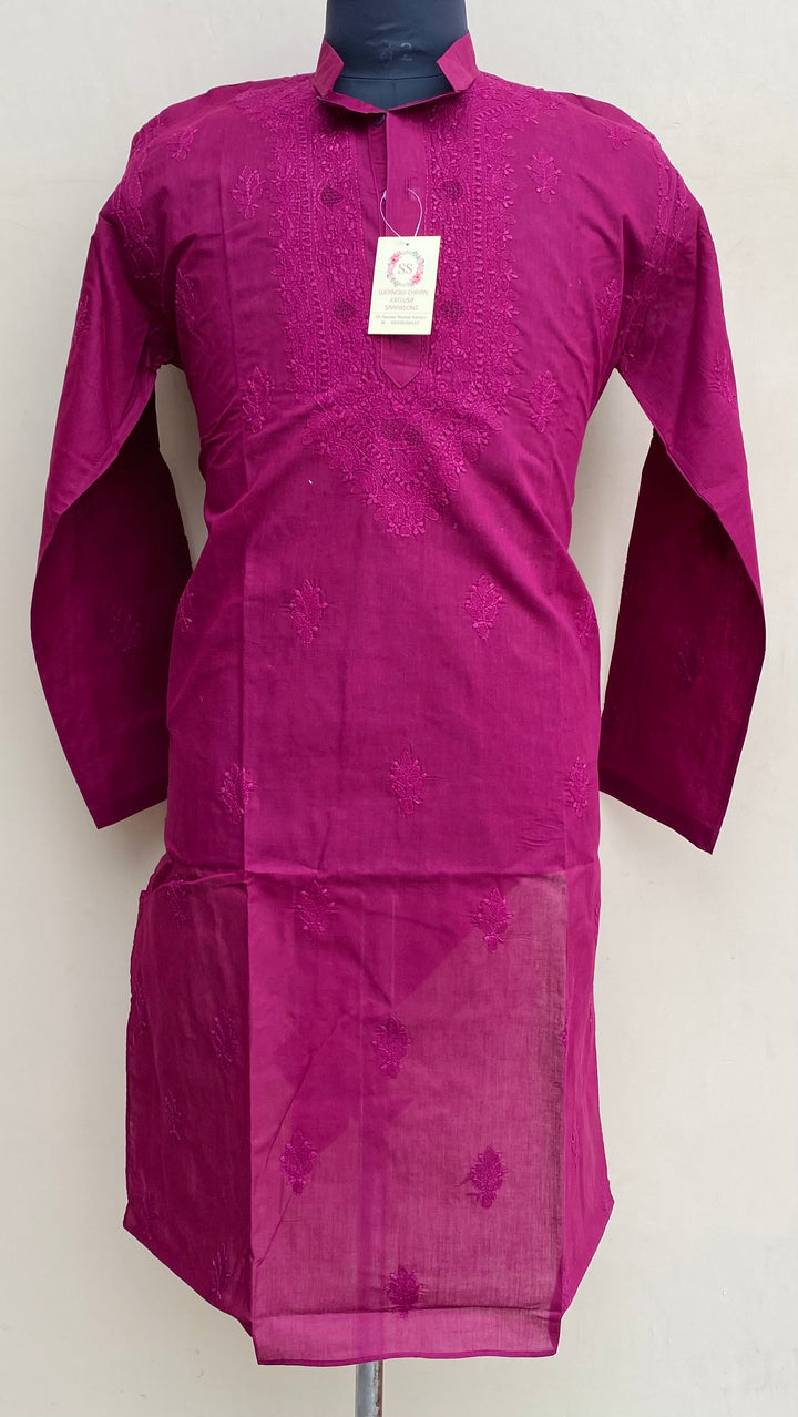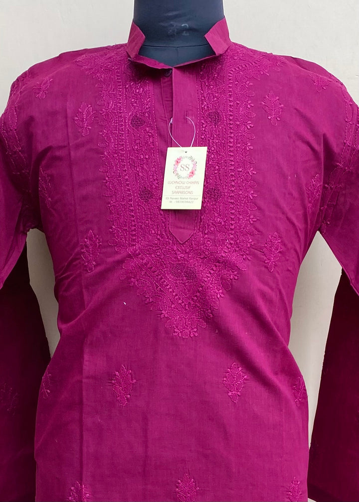 Lucknowi Chikankari Men’s Kurta Wine Cotton With Jaali Work
