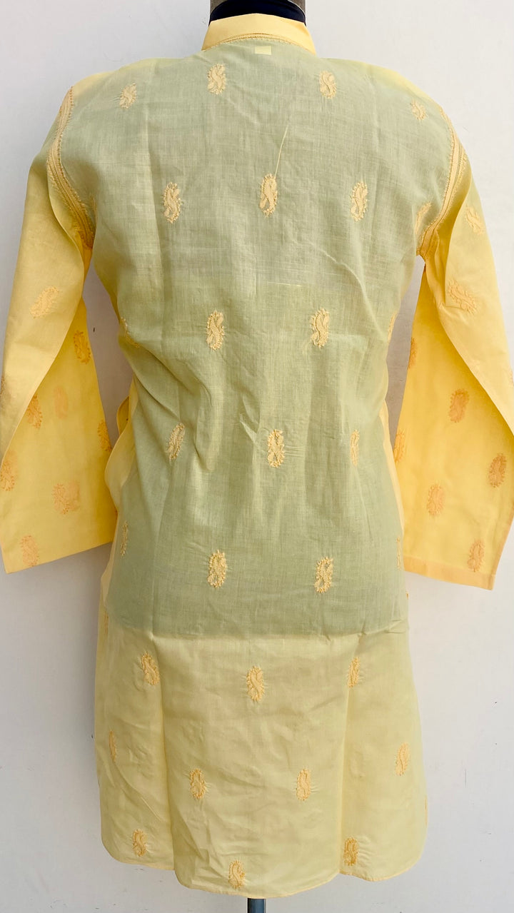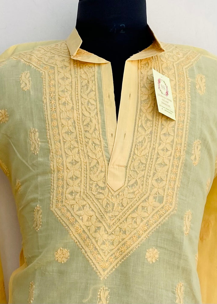 Lucknowi Chikankari Men’s Kurta Yellow Cotton