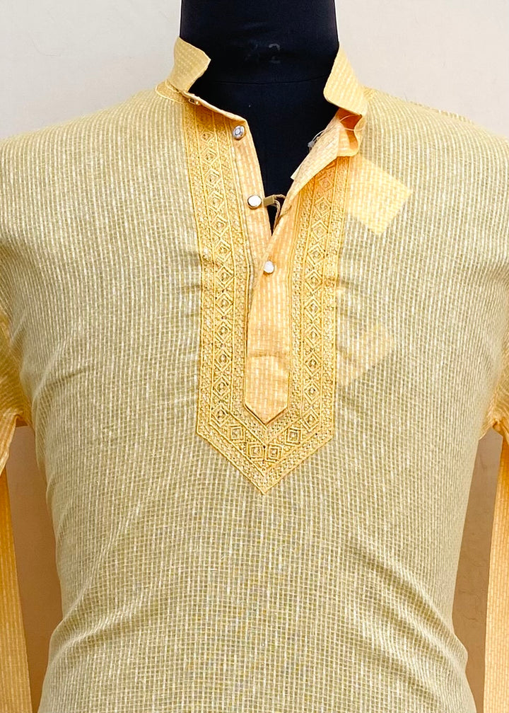 Lucknowi Chikankari Men’s Kurta Yellow Cotton