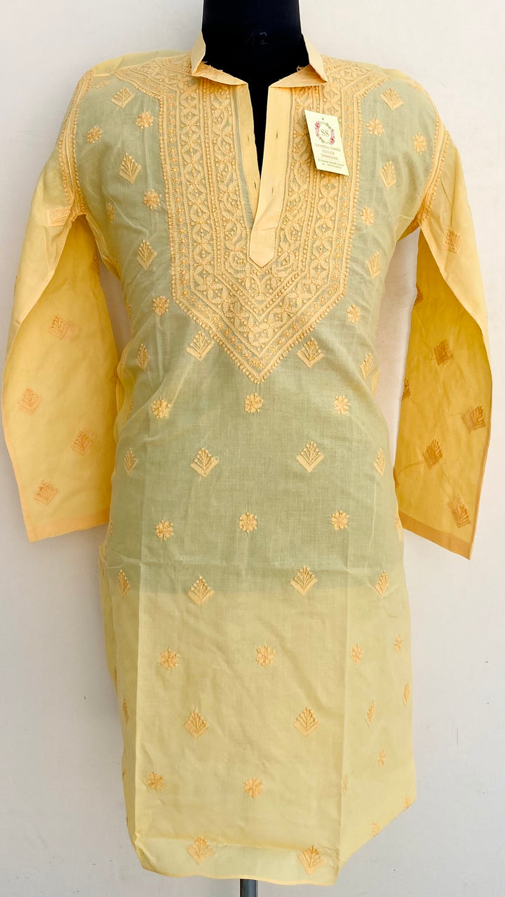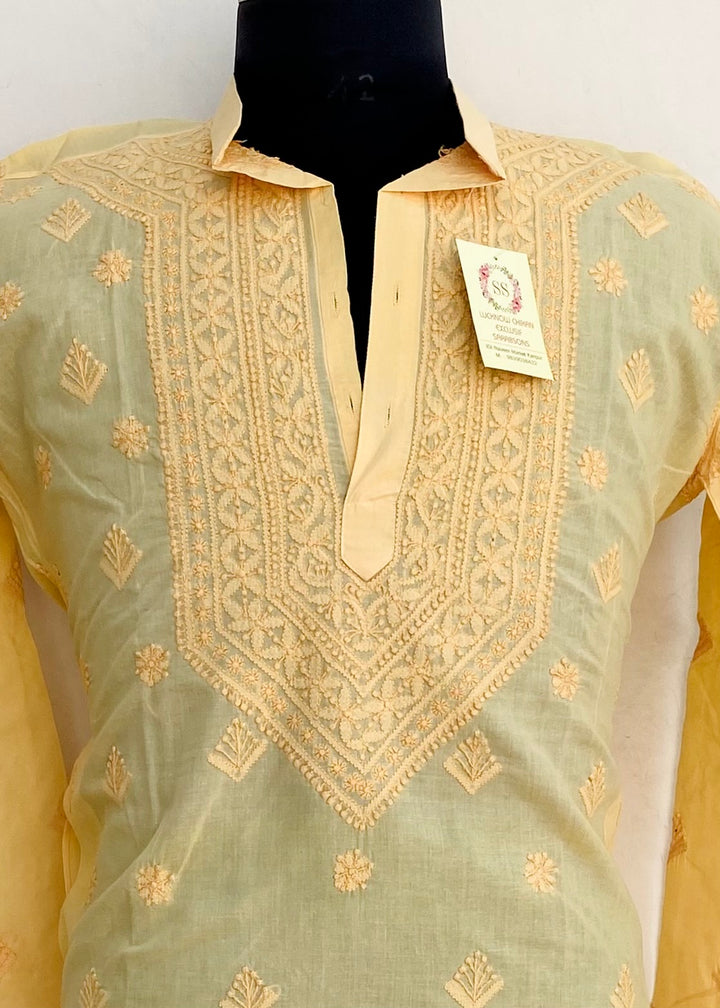 Lucknowi Chikankari Men’s Kurta Yellow Cotton