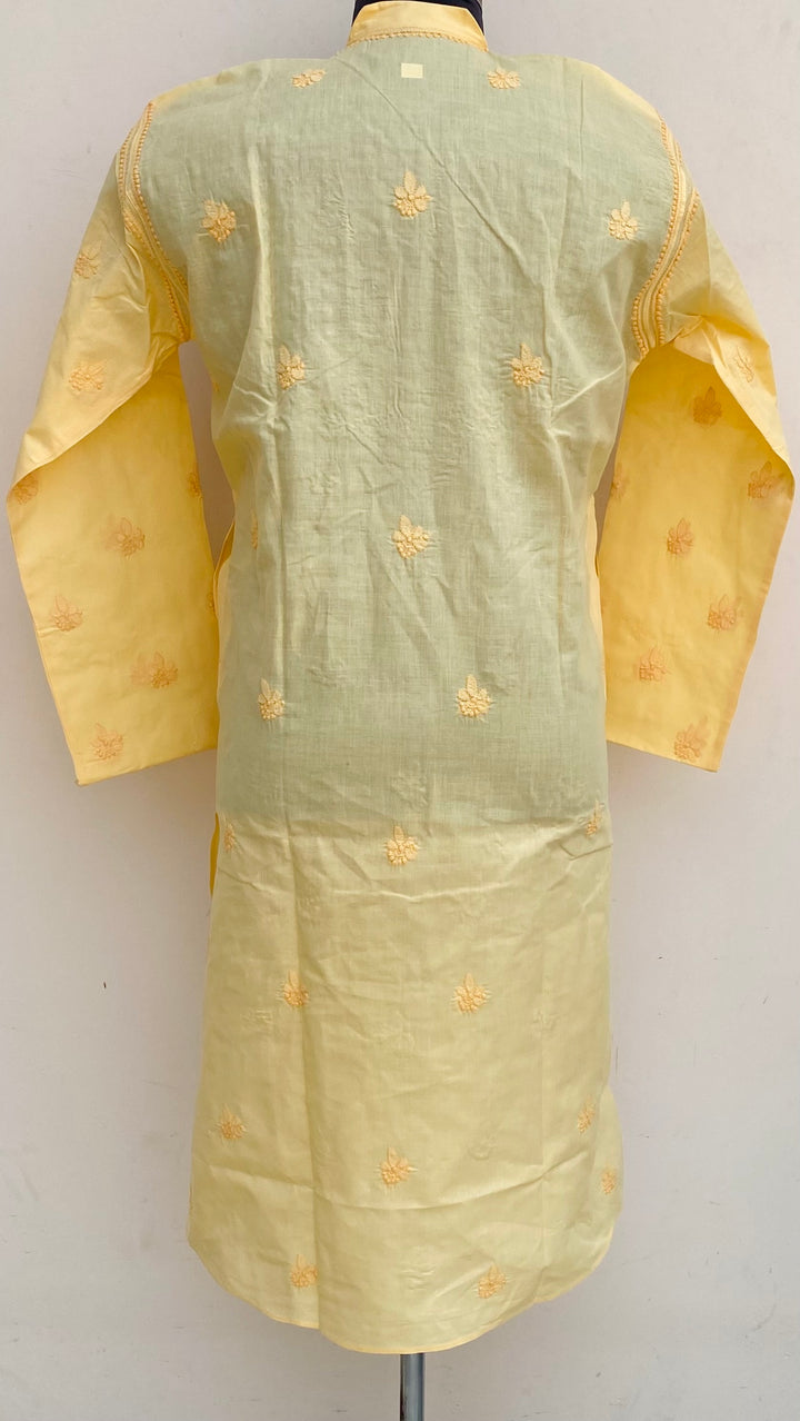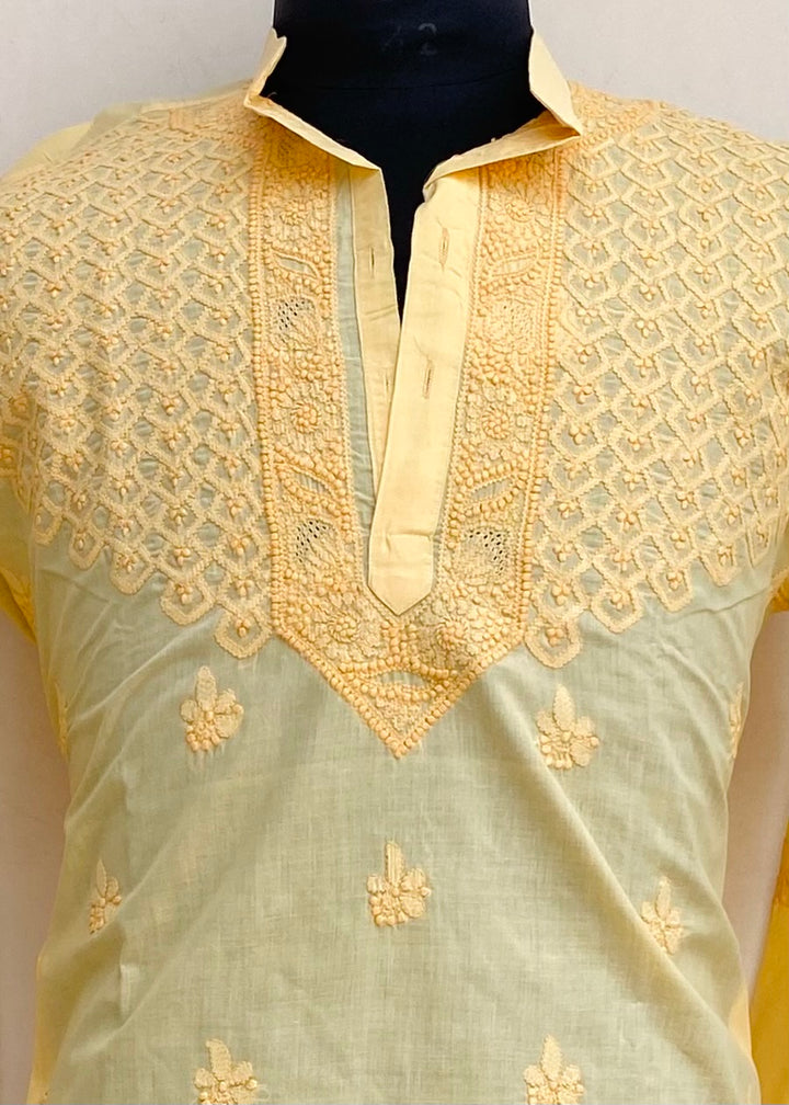 Lucknowi Chikankari Men’s Kurta Yellow Cotton With Jaali Work