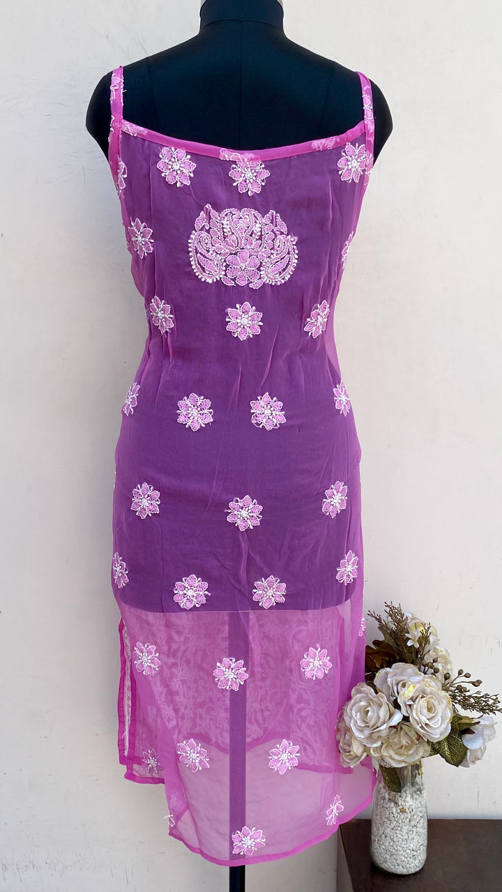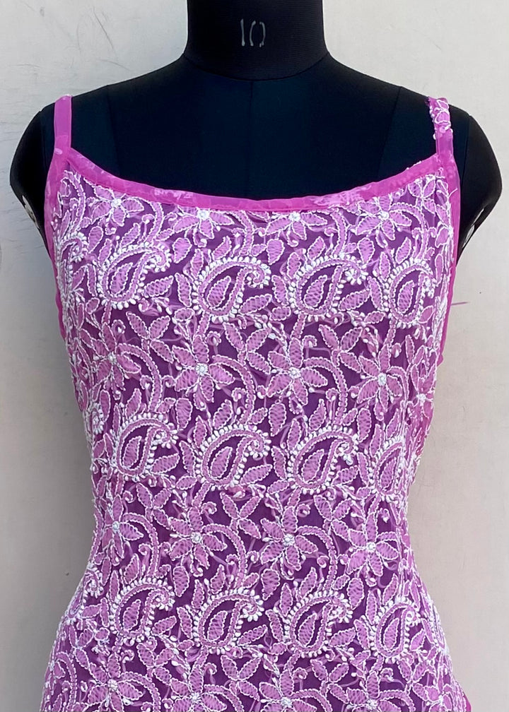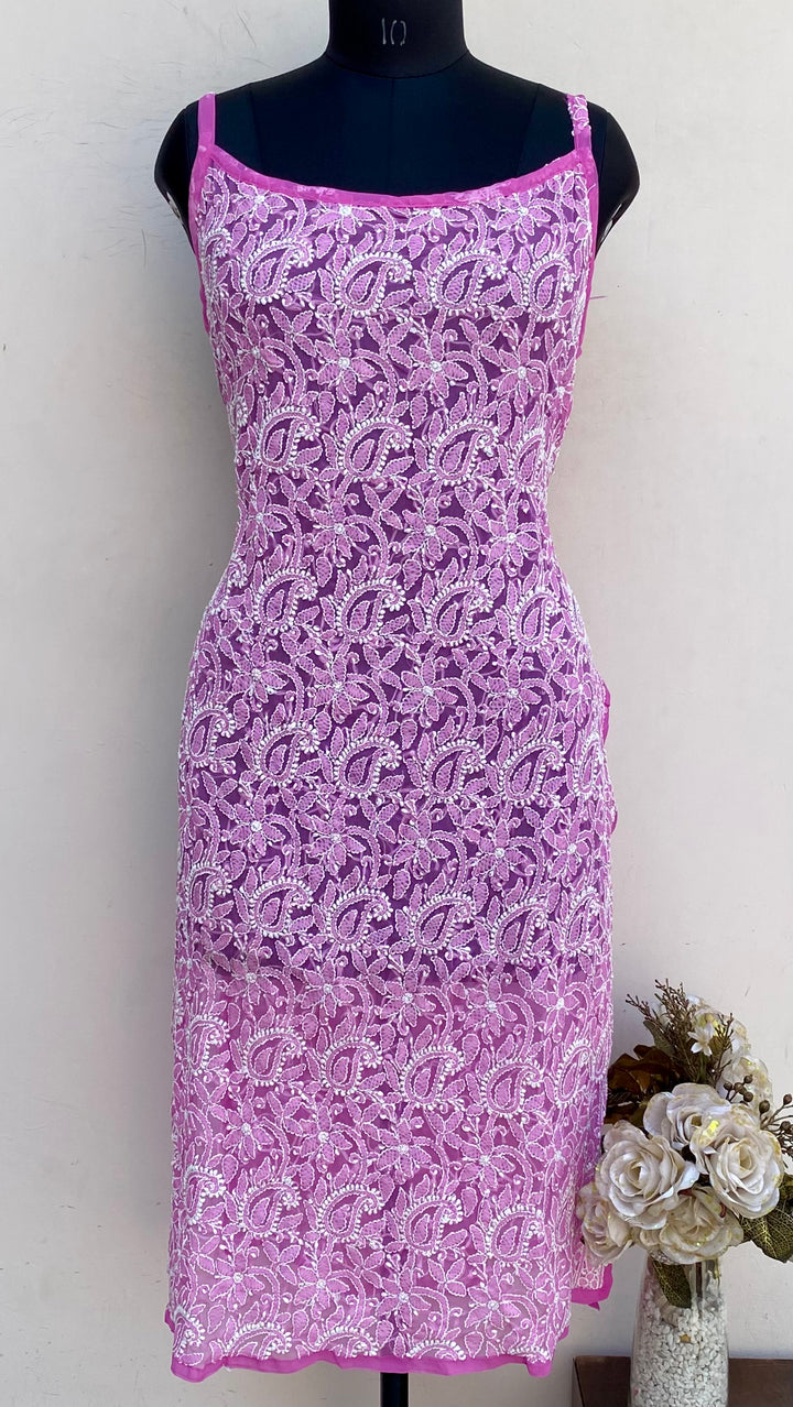 Lucknowi Chikankari Noodle Strap Kurti Pink Georgette