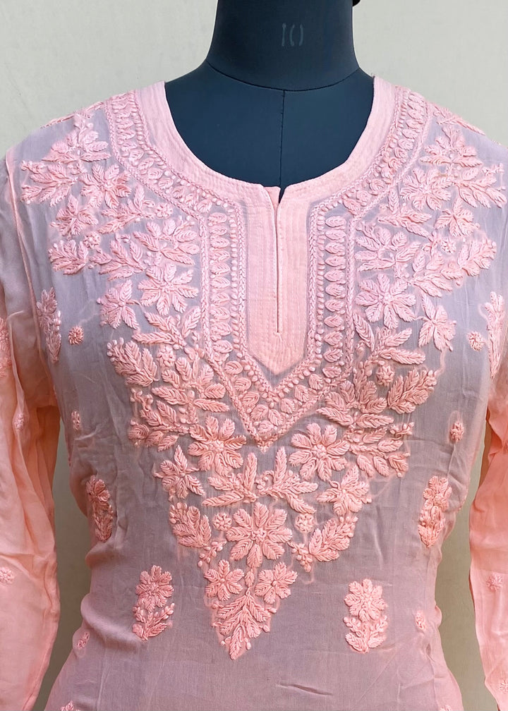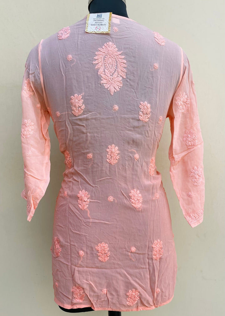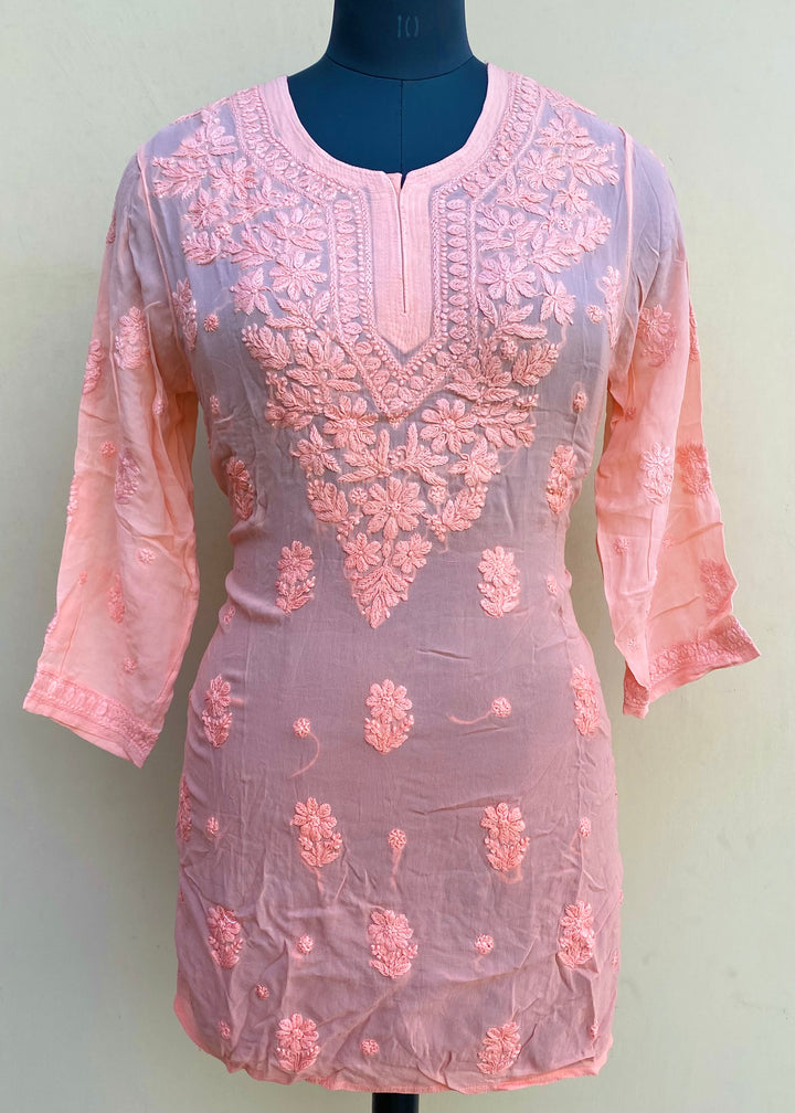 Lucknowi Chikankari Ombre Short Kurti Peach Pure Georgette