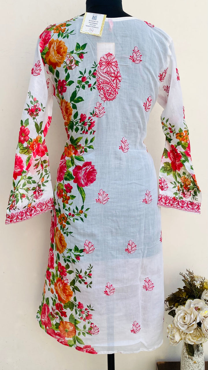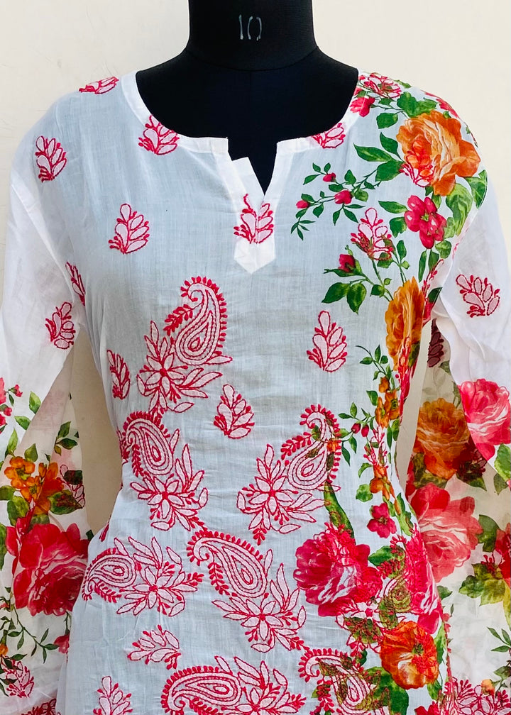 Lucknowi Chikankari Printed Kurti White Mulmul Cotton