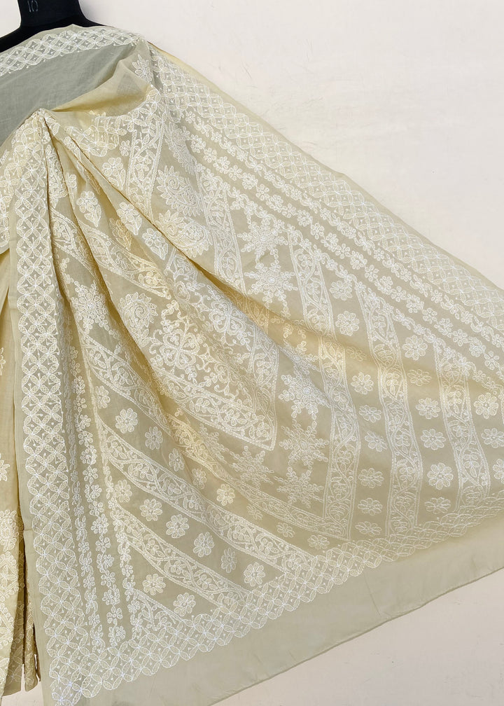 Lucknowi Chikankari Saree Beige Cotton With Blouse
