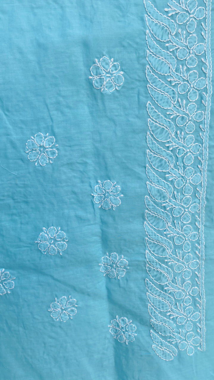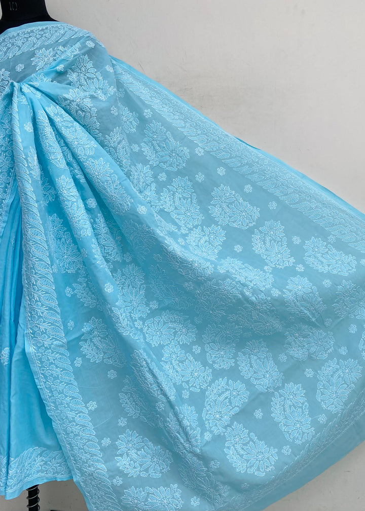Lucknowi Chikankari Saree Blue Cotton With Blouse