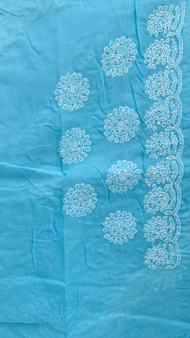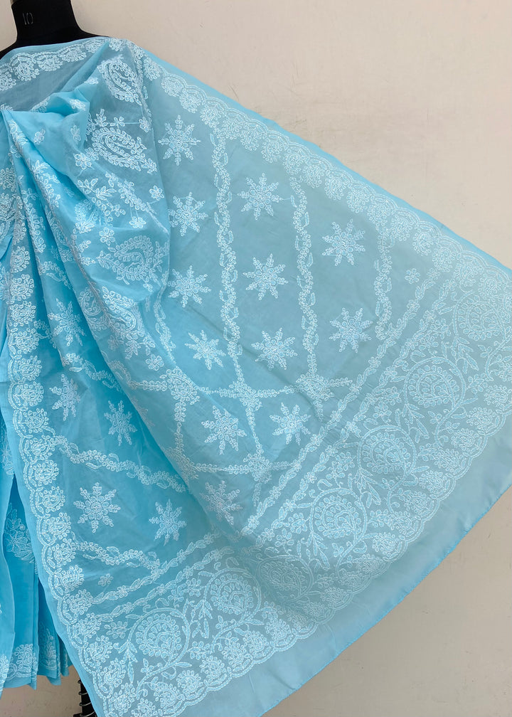 Lucknowi Chikankari Saree Blue Cotton With Blouse