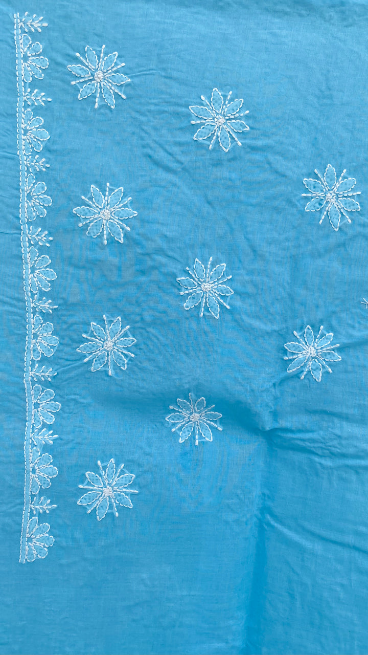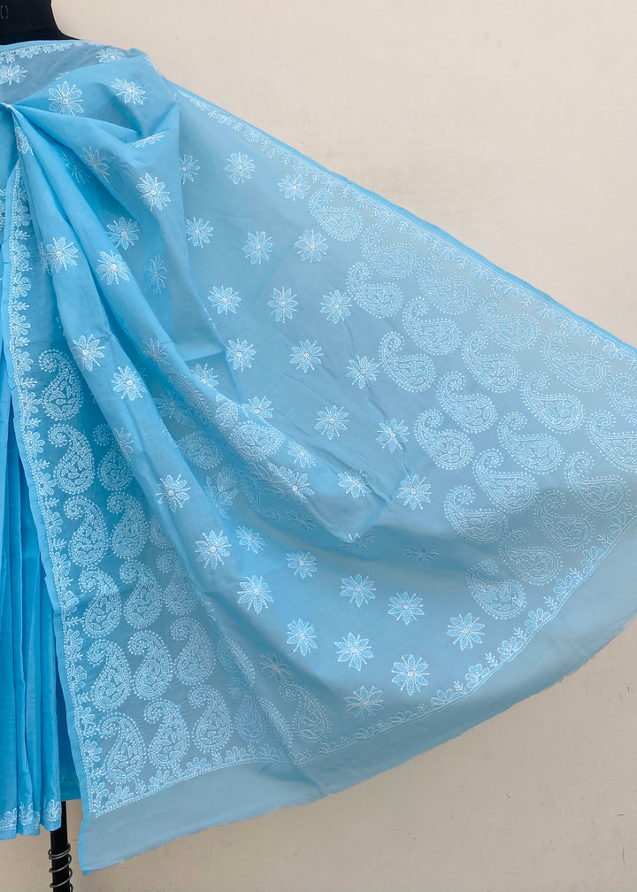 Lucknowi Chikankari Saree Blue Cotton With Blouse