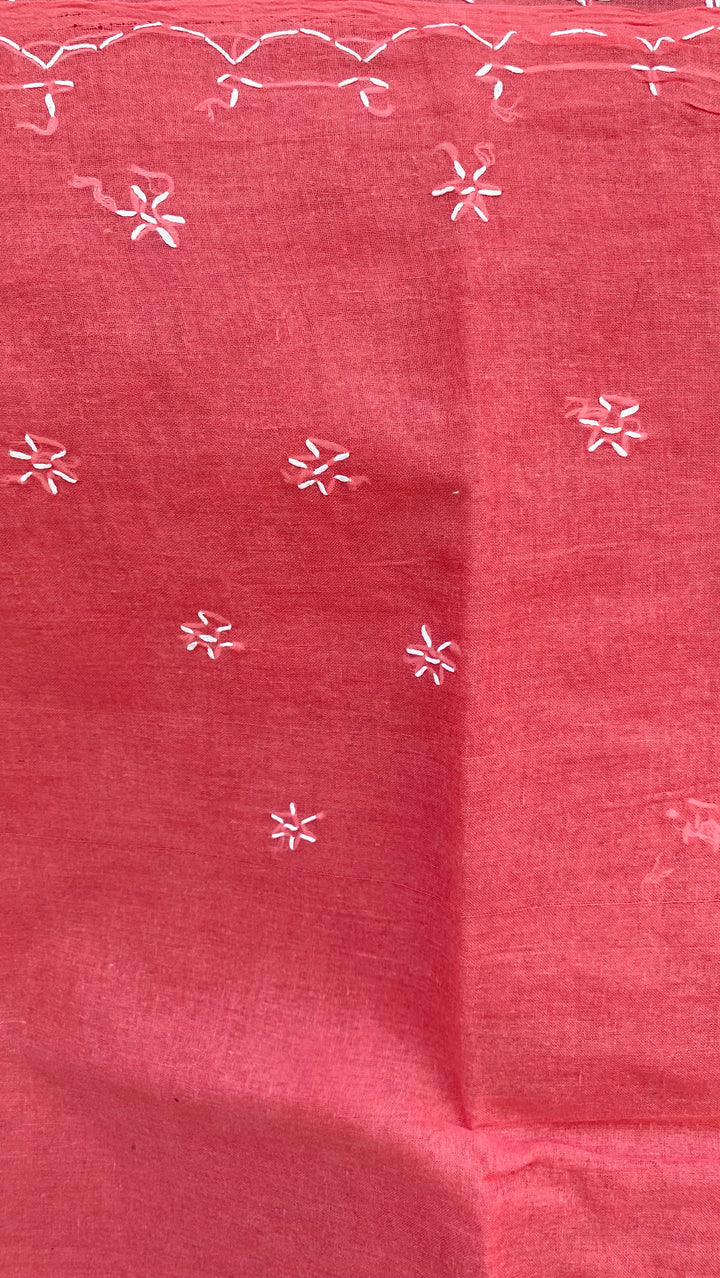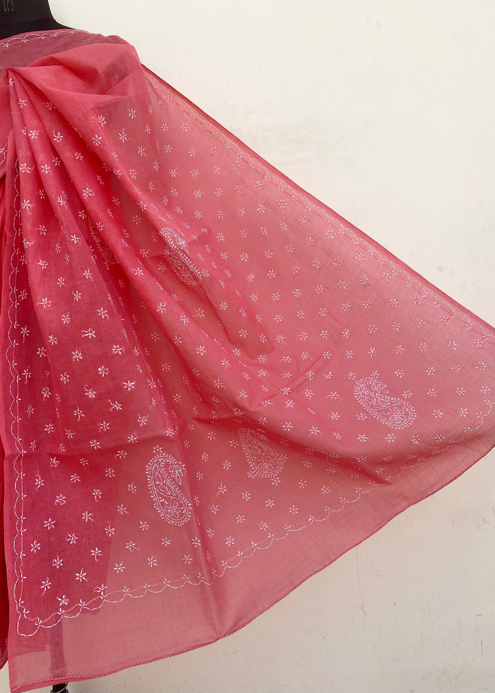 Lucknowi Chikankari Saree Gajri Cotton With Blouse
