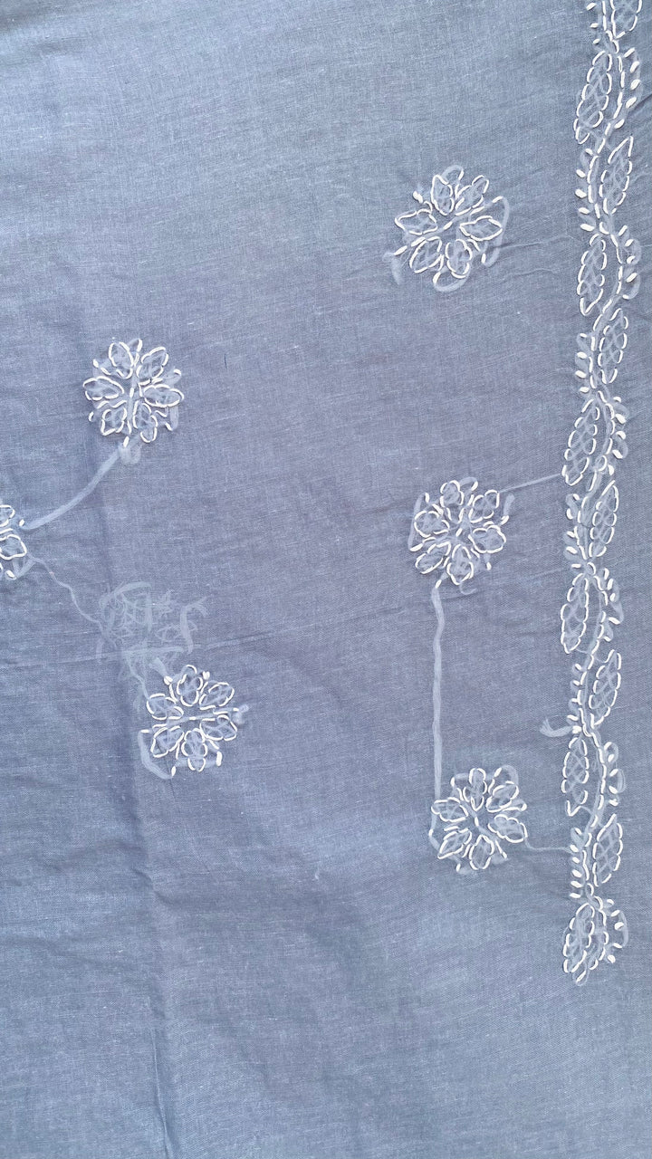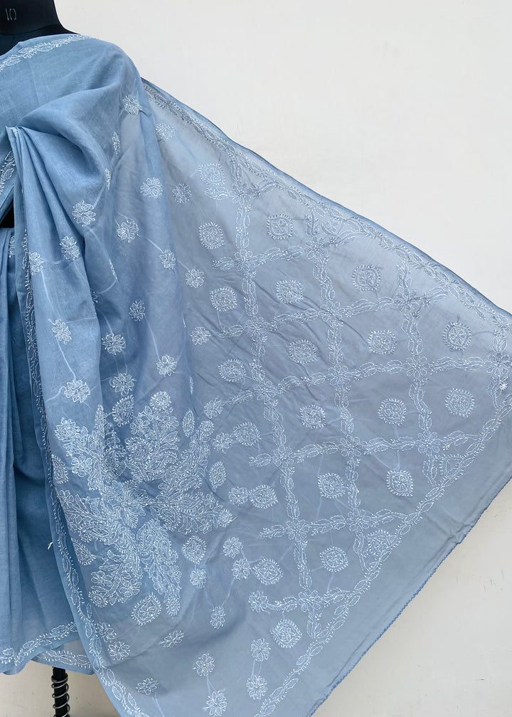 Lucknowi Chikankari Saree Gray Cotton With Blouse